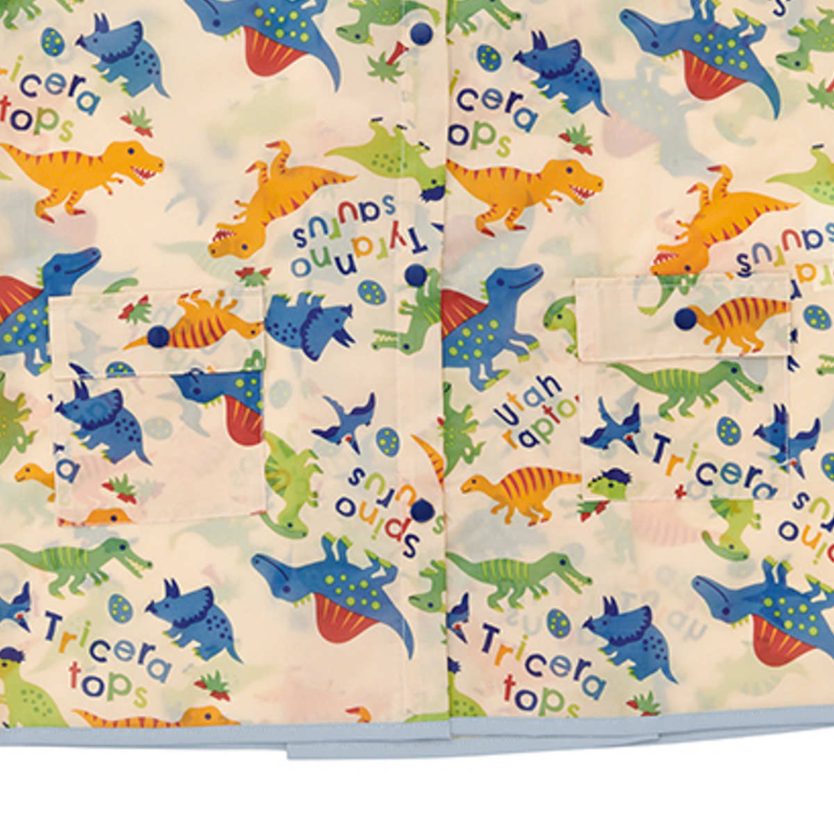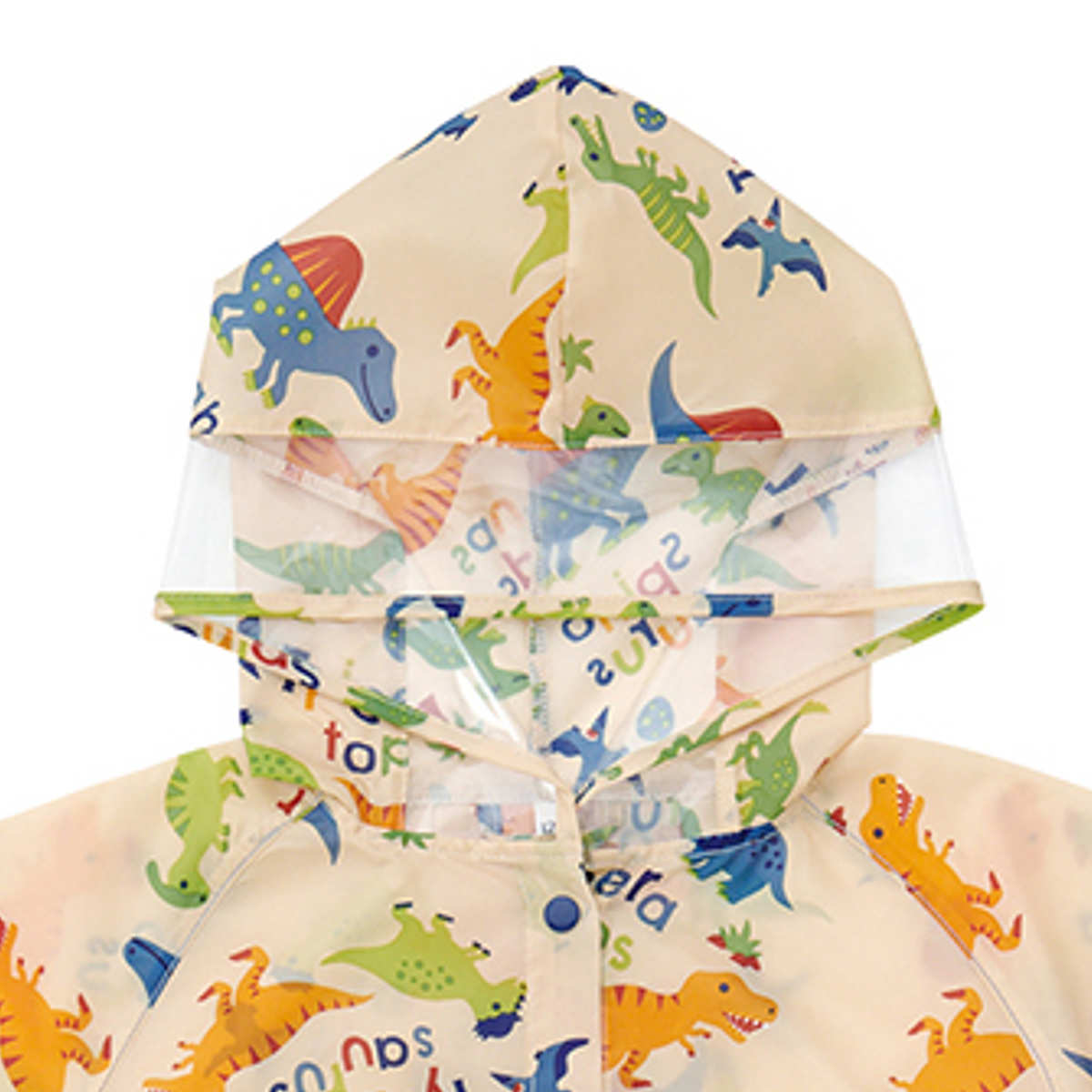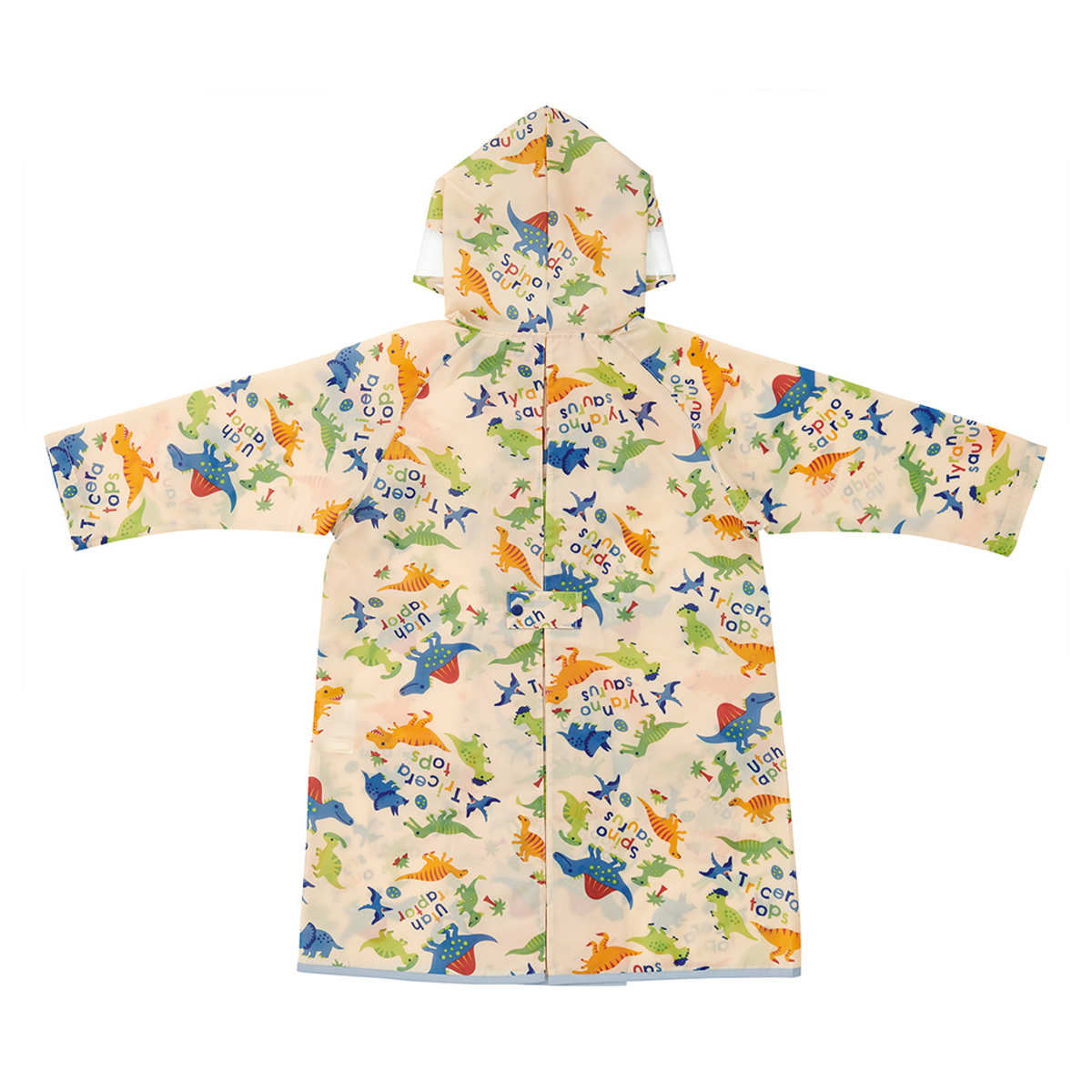 後ろのボタンを外すと幅が広がるので、ランドセルやリュックを背負ったままかぶることができます。雨の日の通園通学に心強いレインコートです。