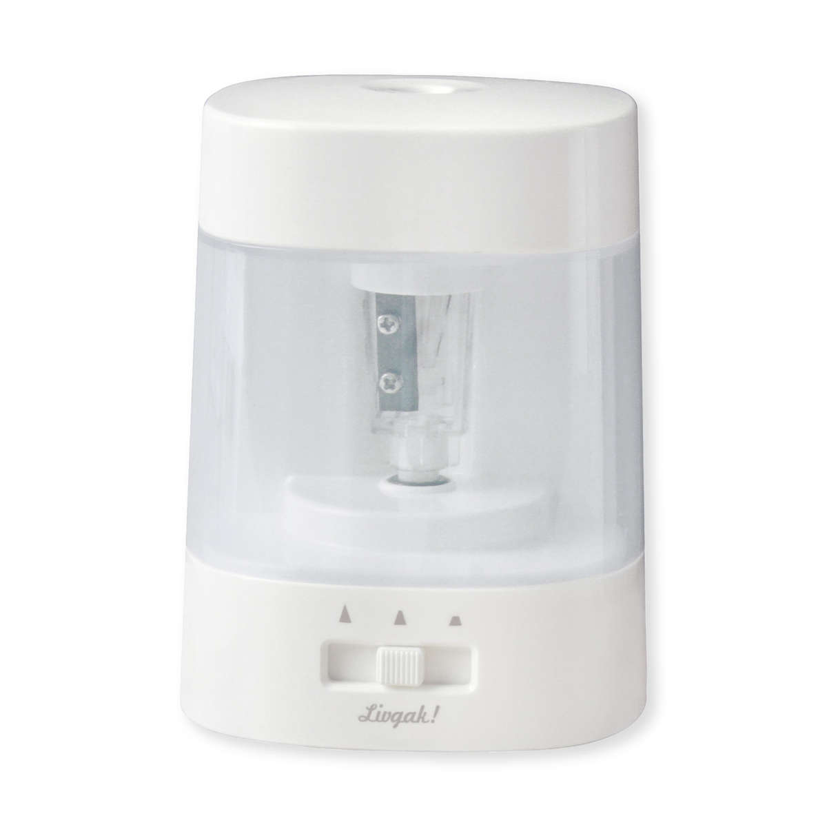 上から差しこむタイプで、削りやすい電動鉛筆削りです。手で鉛筆を押し込むと削れて、上に引くと止まる設計で、お子様でも簡単に使えます。六角・三角・丸型の3種類の鉛筆に対応しているのも嬉しいポイントです。