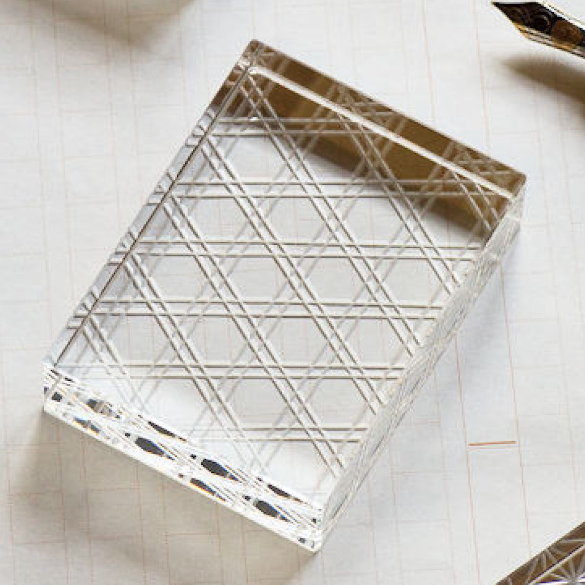 光の屈折が美しく透明度の高い光学ガラスに、昔から愛されてきた江戸切子の紋様を施しています。伝統工芸品の江戸切子を身近に楽しむことのできる文具です。