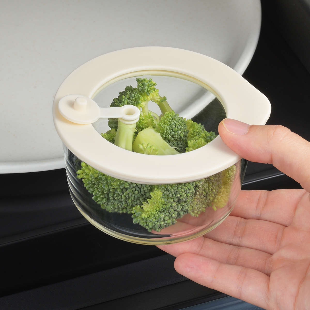 食材の保存からの調理までこなす、機能的なグラスコンテナです。お弁当用のおかずや、カットしたフルーツなどの保存におすすめな容量270mlサイズです。パッキン付きなので、汁気の多い料理も液漏れしにくく安心です。