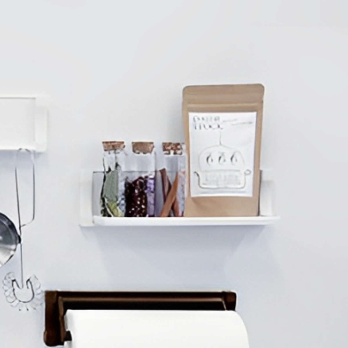 冷蔵庫やマグネット対応のステンレスラックなど、マグネットがつく場所に気軽に取り付けられる小物置きです。リビングやサニタリーにも馴染むシンプルなデザインです。