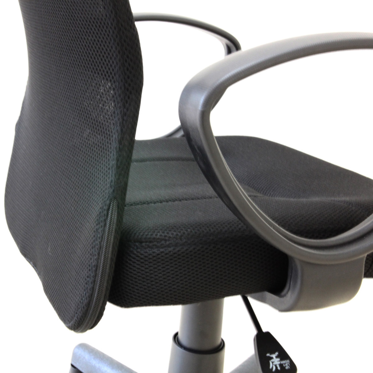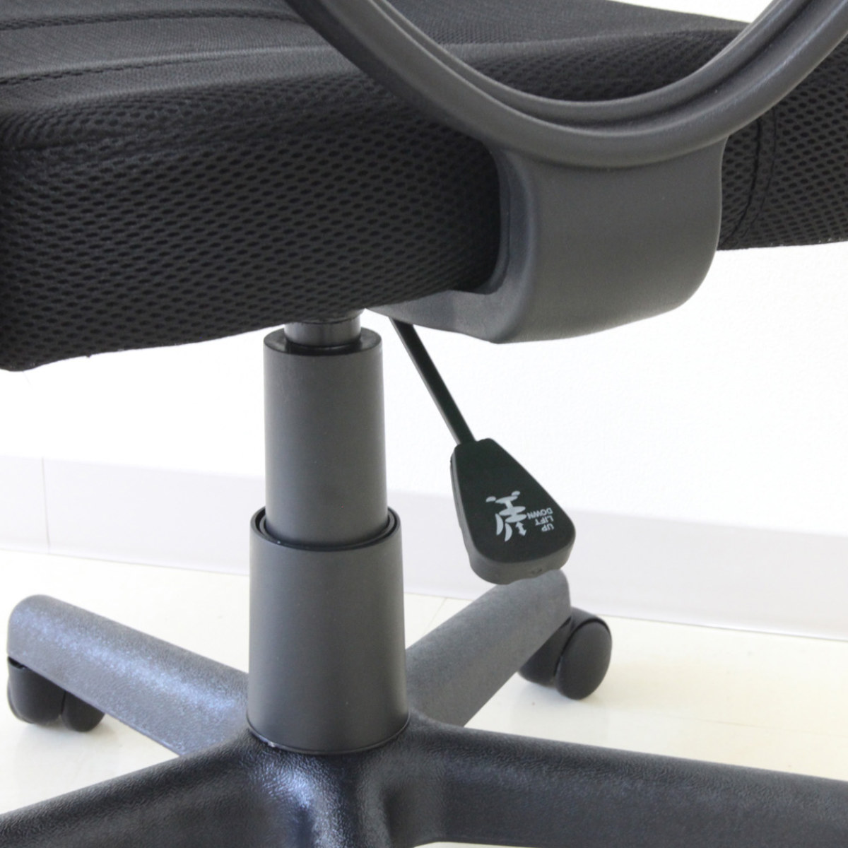 背もたれと座面には、身体が滑りにくく通気性の良いメッシュ生地を使用しているので、熱がこもらず快適です。