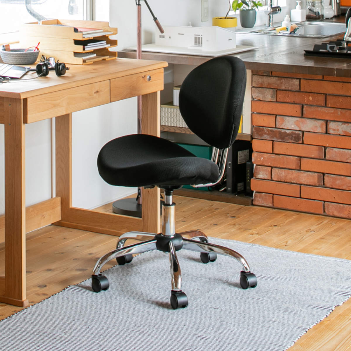 肘掛けが無くコンパクトなフォルムでデスクワークが楽しくなる快適なチェアです。インテリアにも馴染みやすいシンプルなデザインです。オフィスでの使用はもちろん、在宅ワークなど様々なシーンで活躍してくれます。