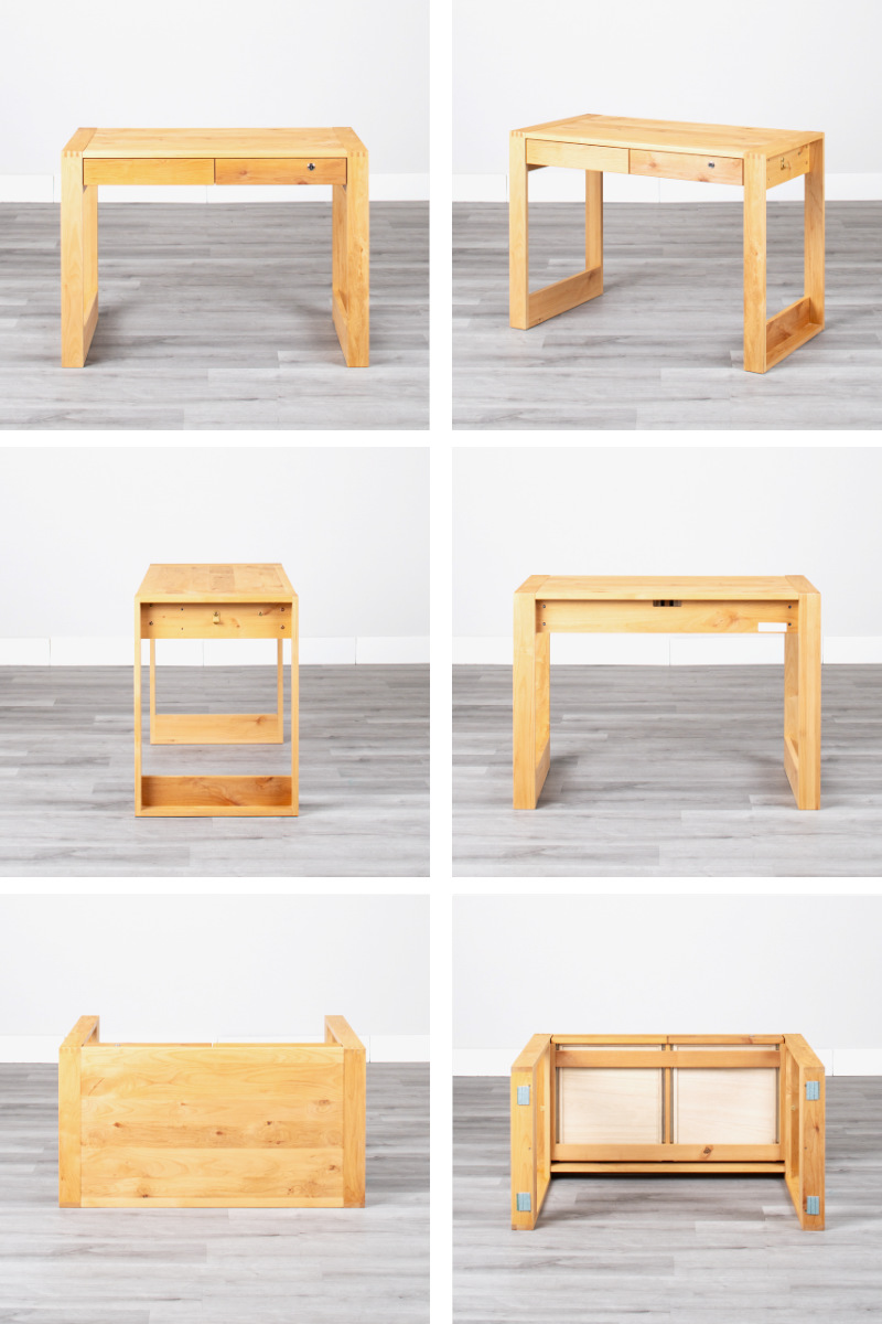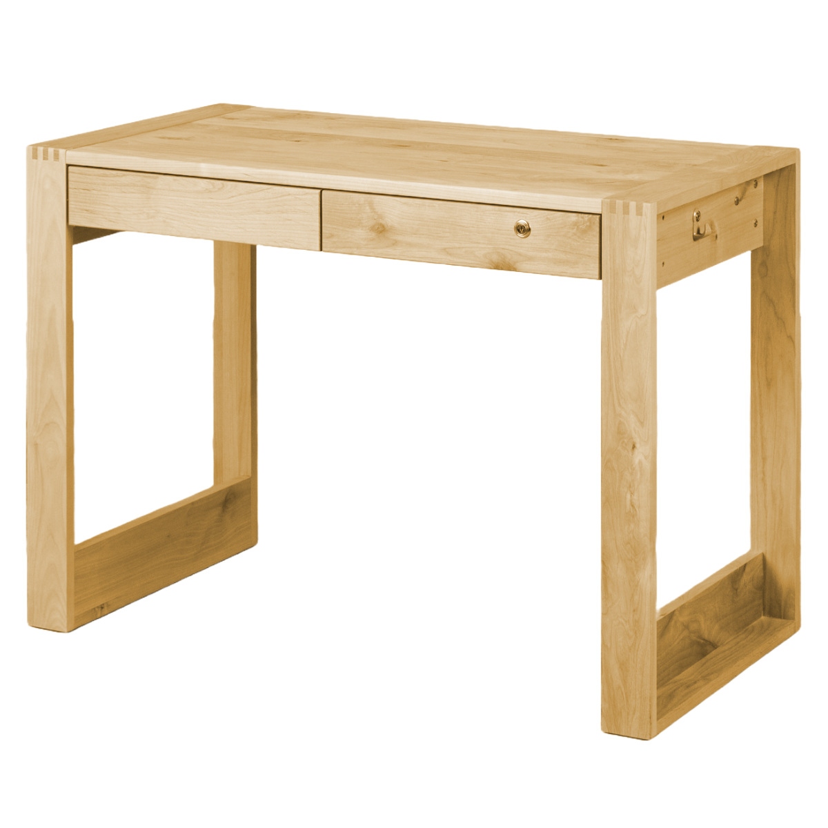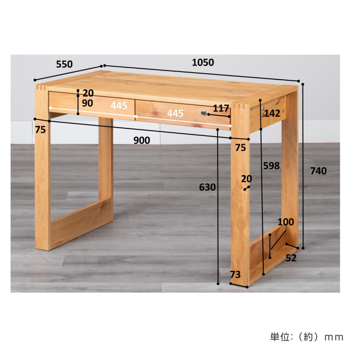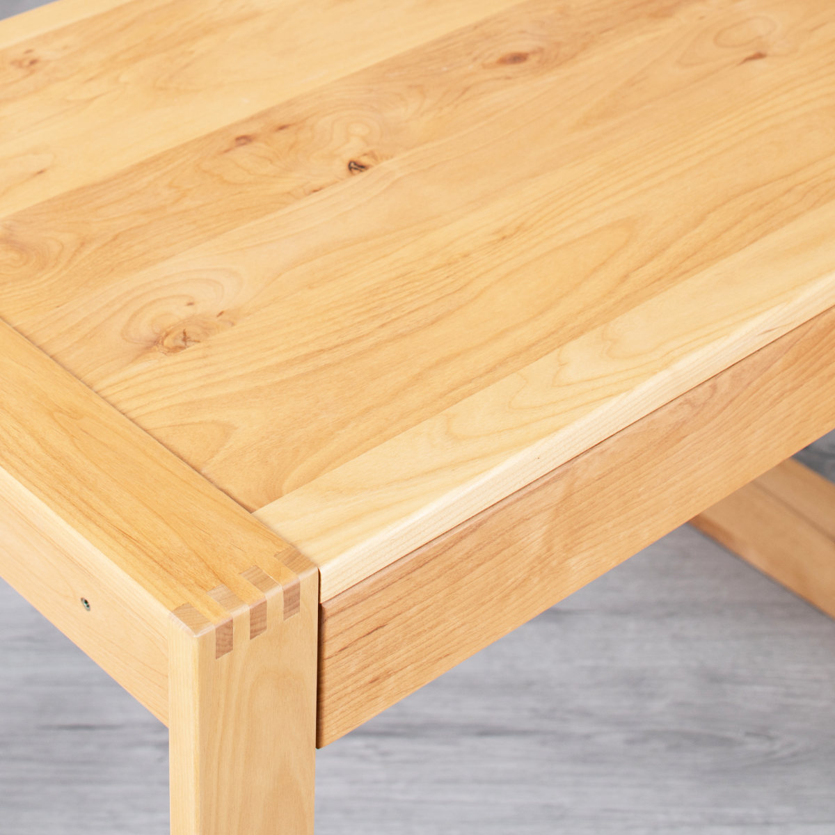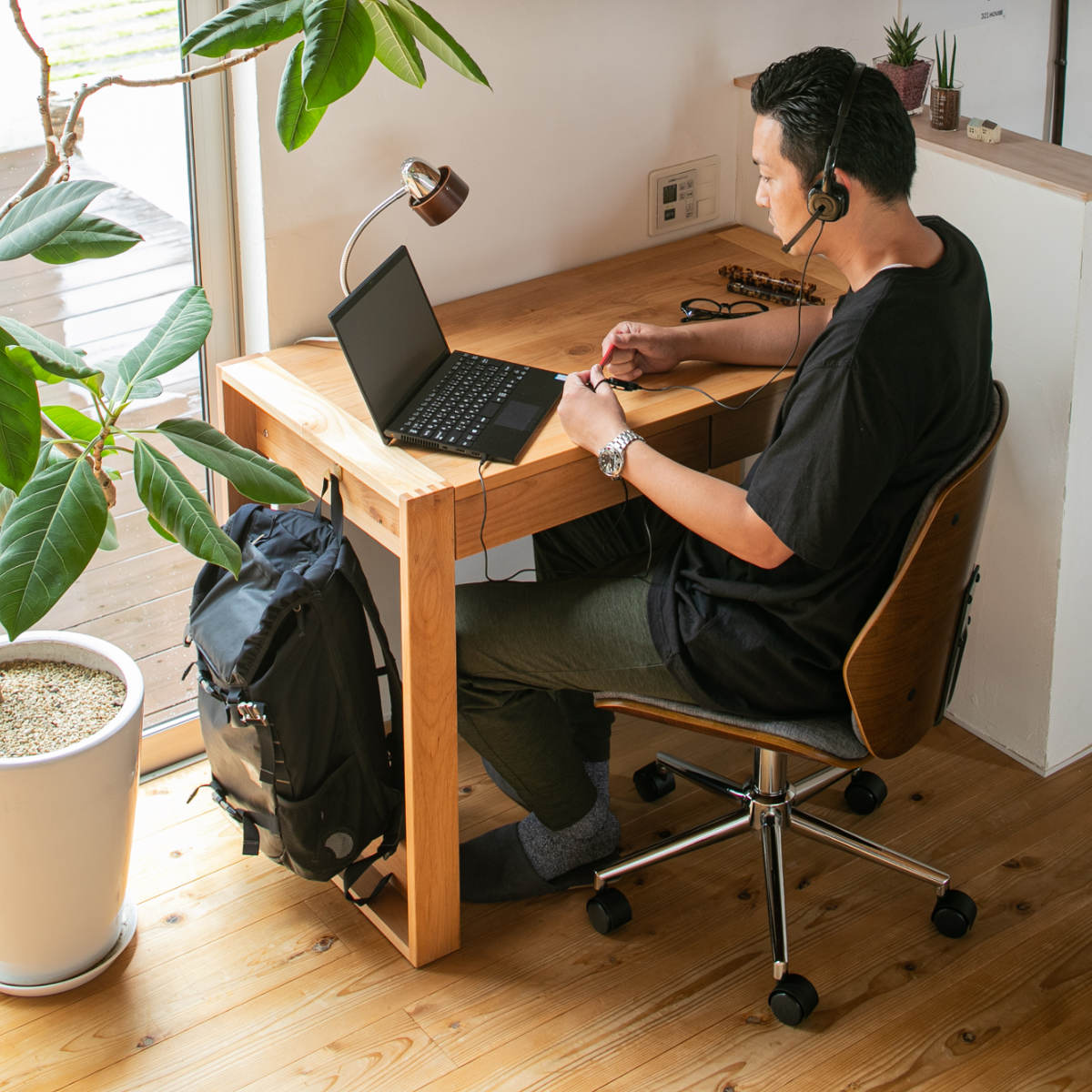 デザイン的にあしらった木組みがワンポイントのデスクです。お部屋のちょっとしたスペースに収まるコンパクトなサイズ感で、シンプルなデザインのためリビングにも設置することができます。