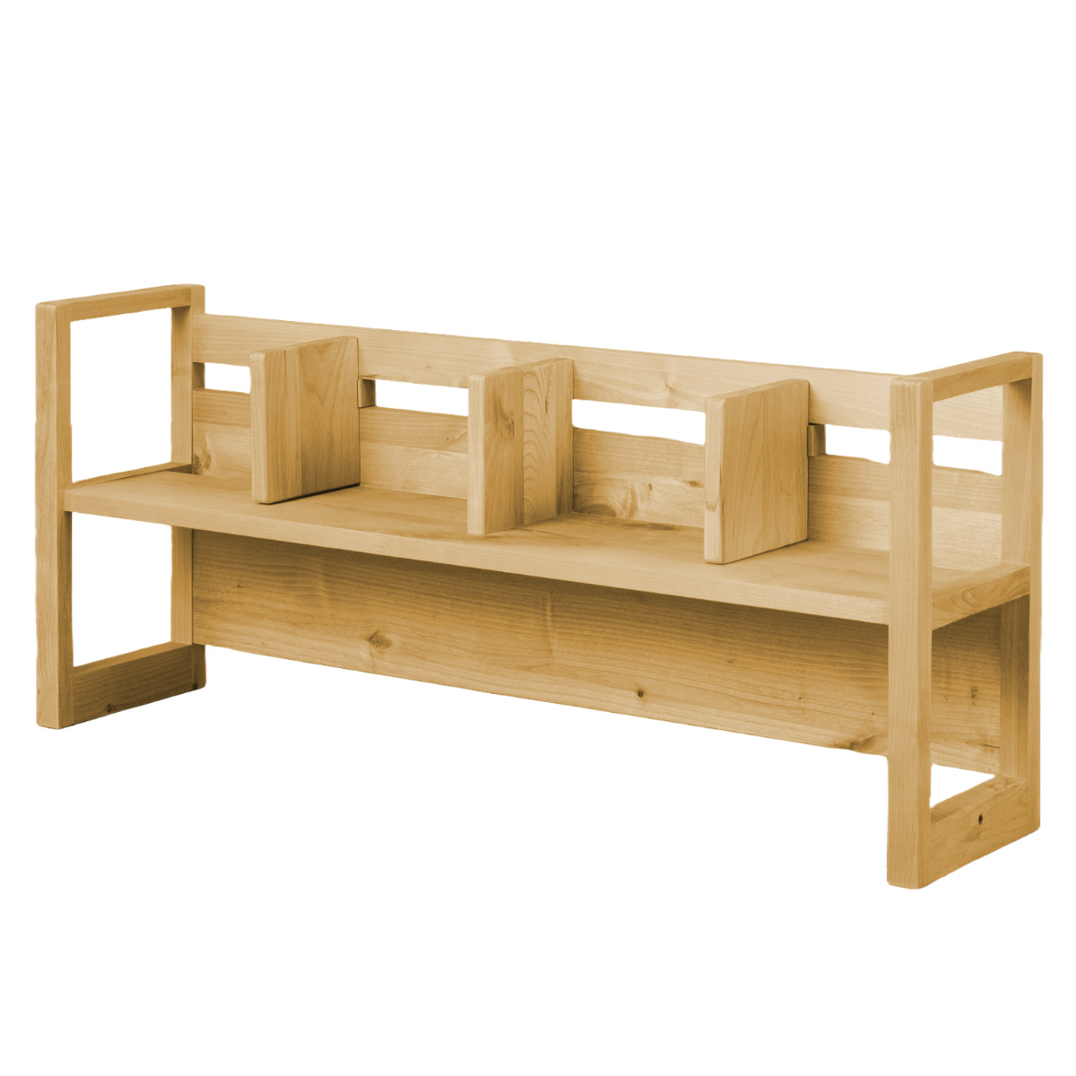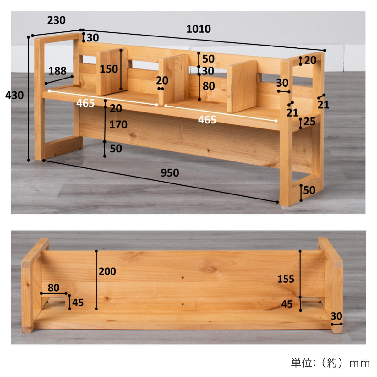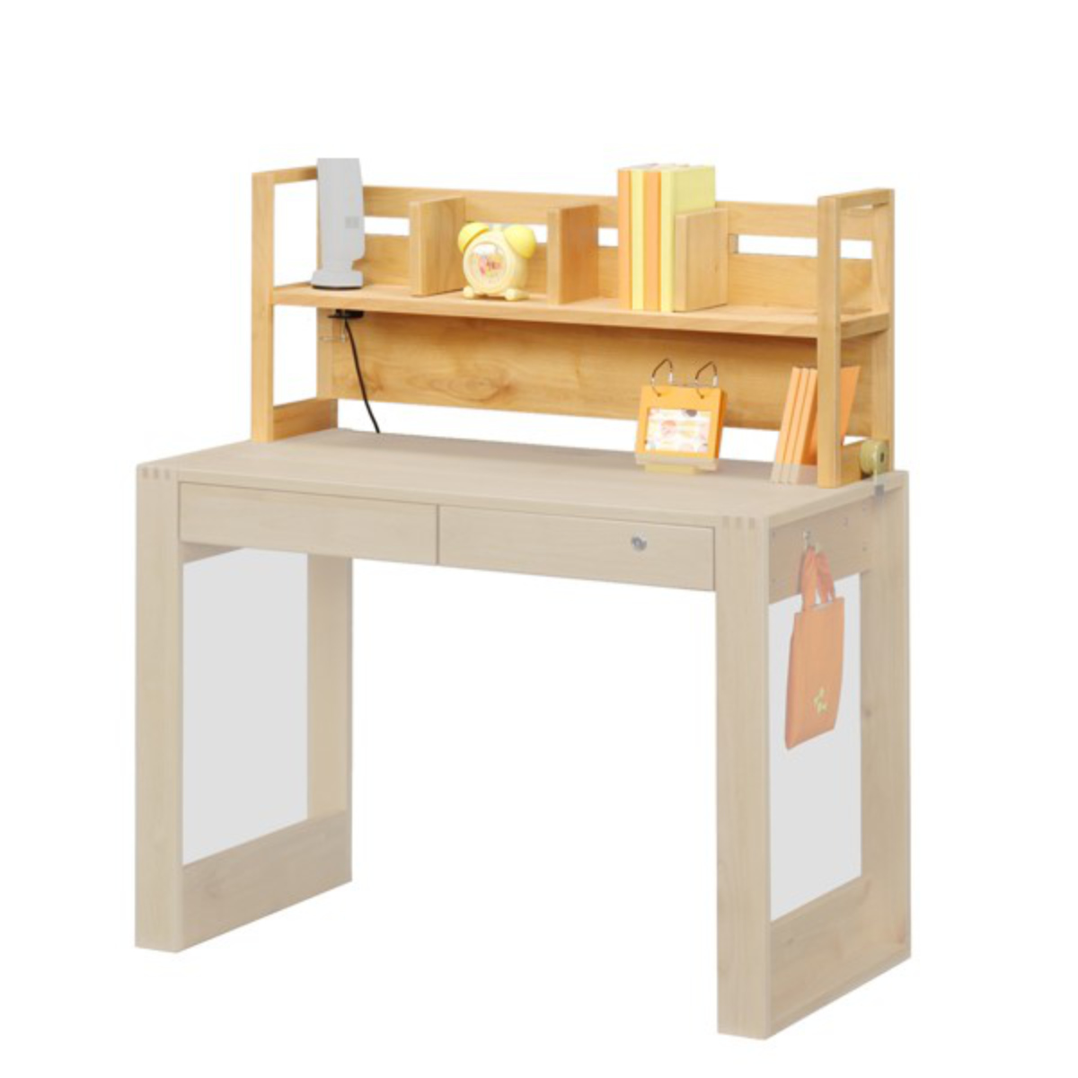 仕切り板が付いた机の上が使いやすくなる机上棚です。机上棚はデスク天板にクランプするような形で設置・取り外しが可能なため、お子様の成長や必要に応じてご使用いただけます。