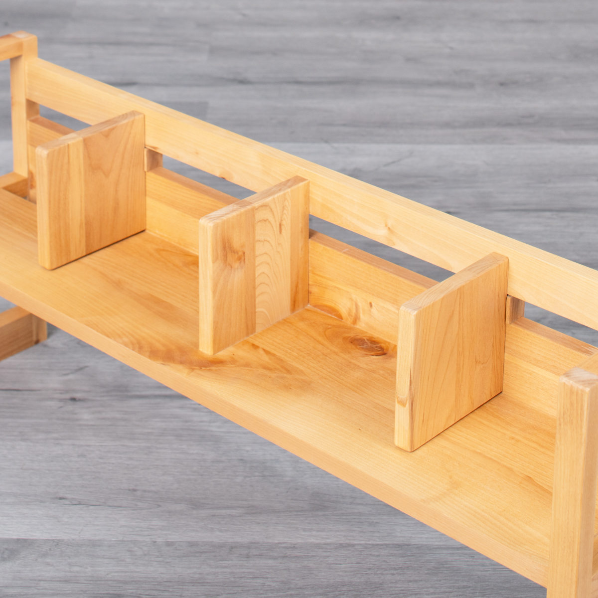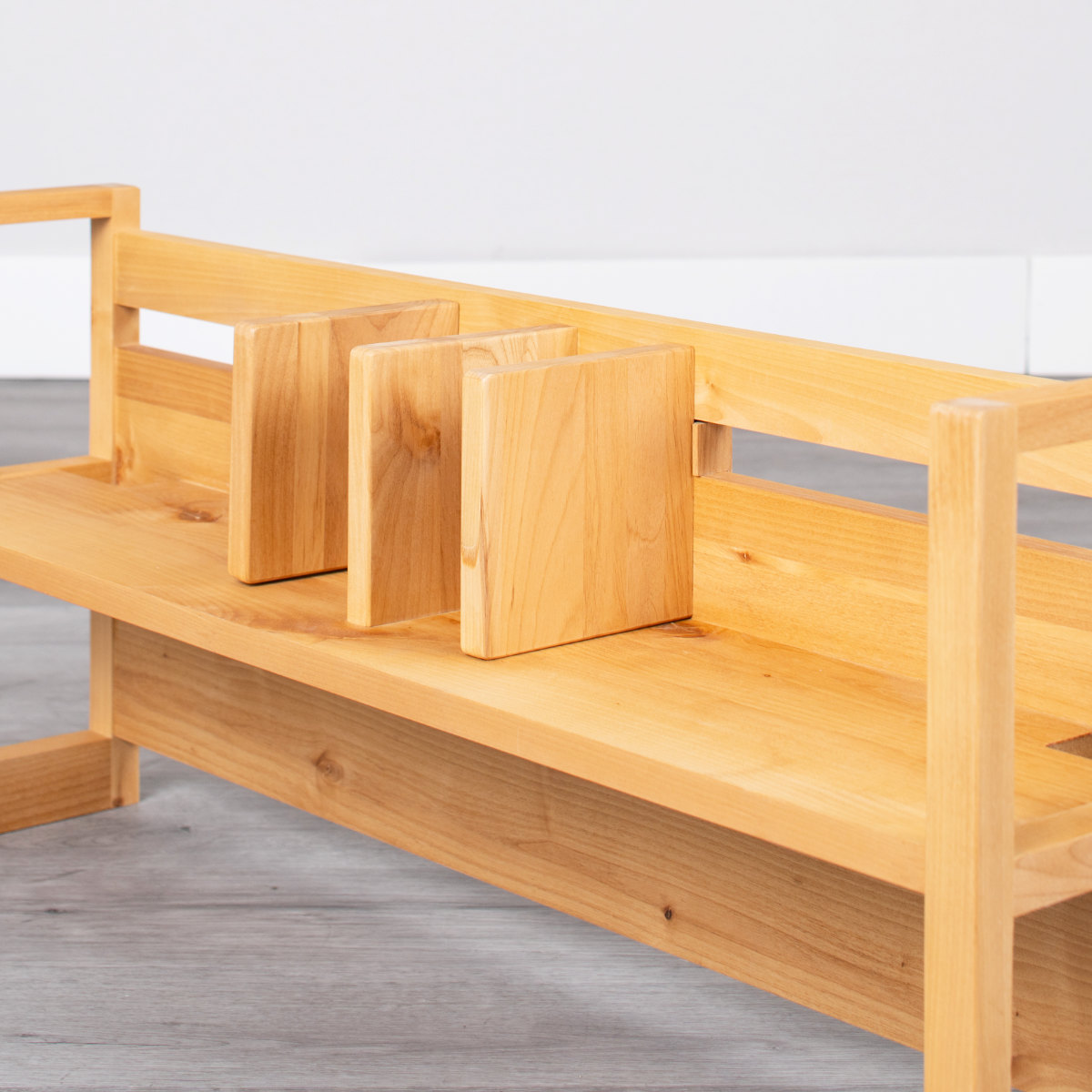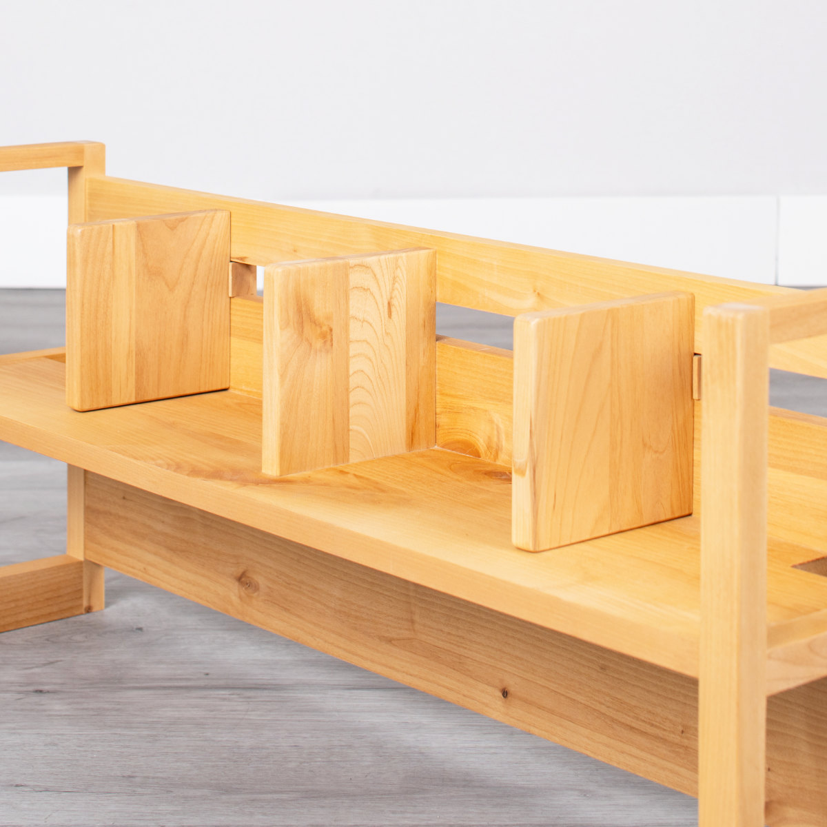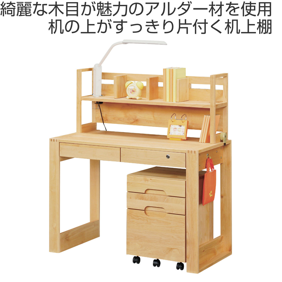 仕切り板が付いた机の上が使いやすくなる机上棚です。机上棚はデスク天板にクランプするような形で設置・取り外しが可能なため、お子様の成長や必要に応じてご使用いただけます。