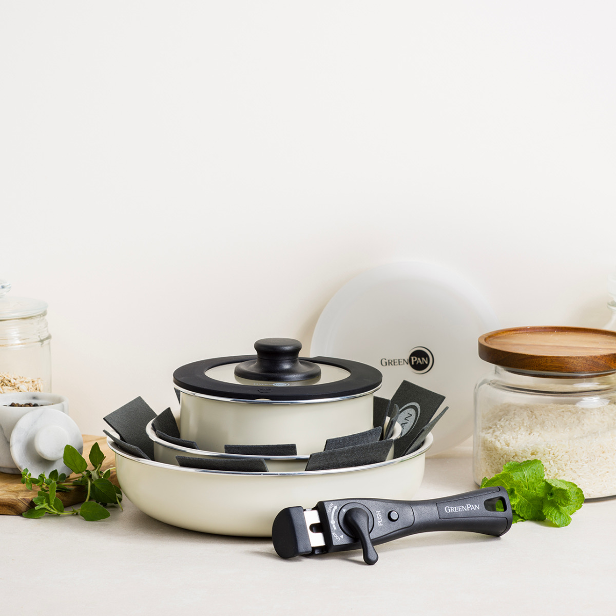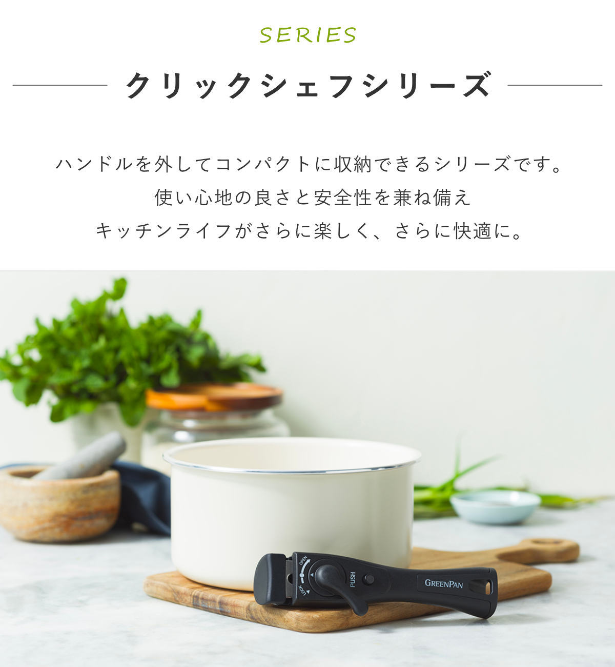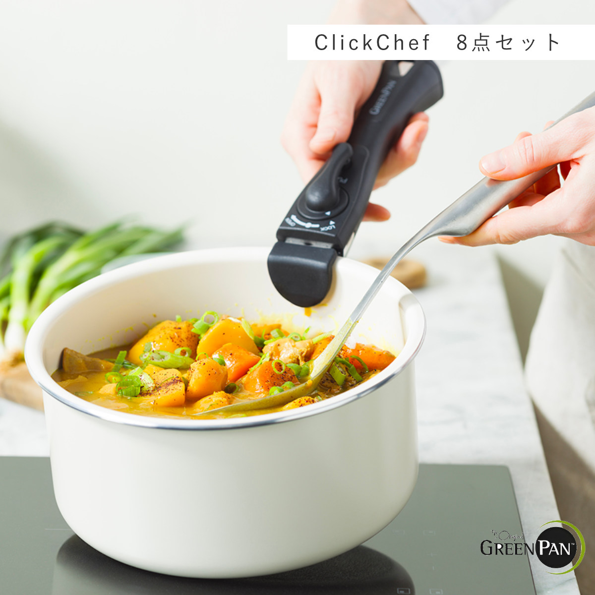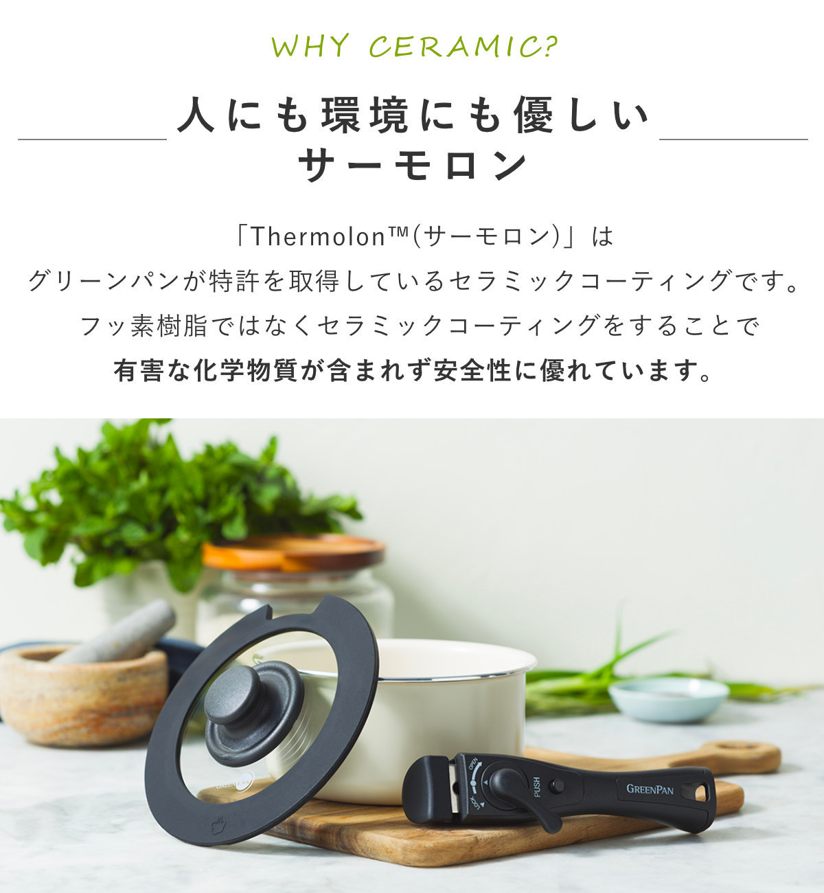 人体と環境に優しいグリーンパンのハンドル着脱タイプ