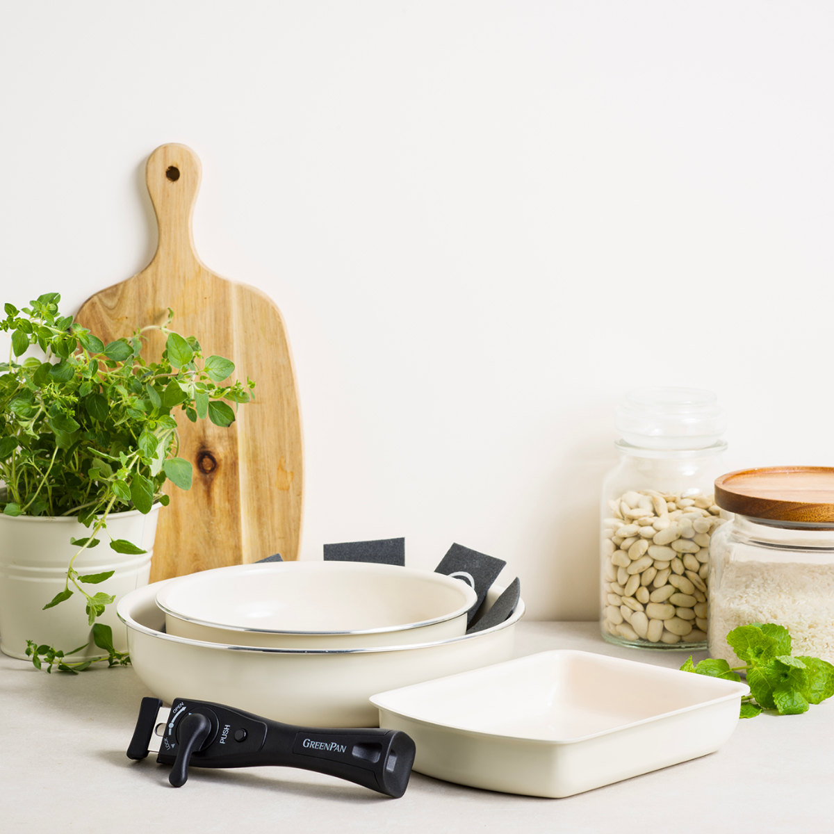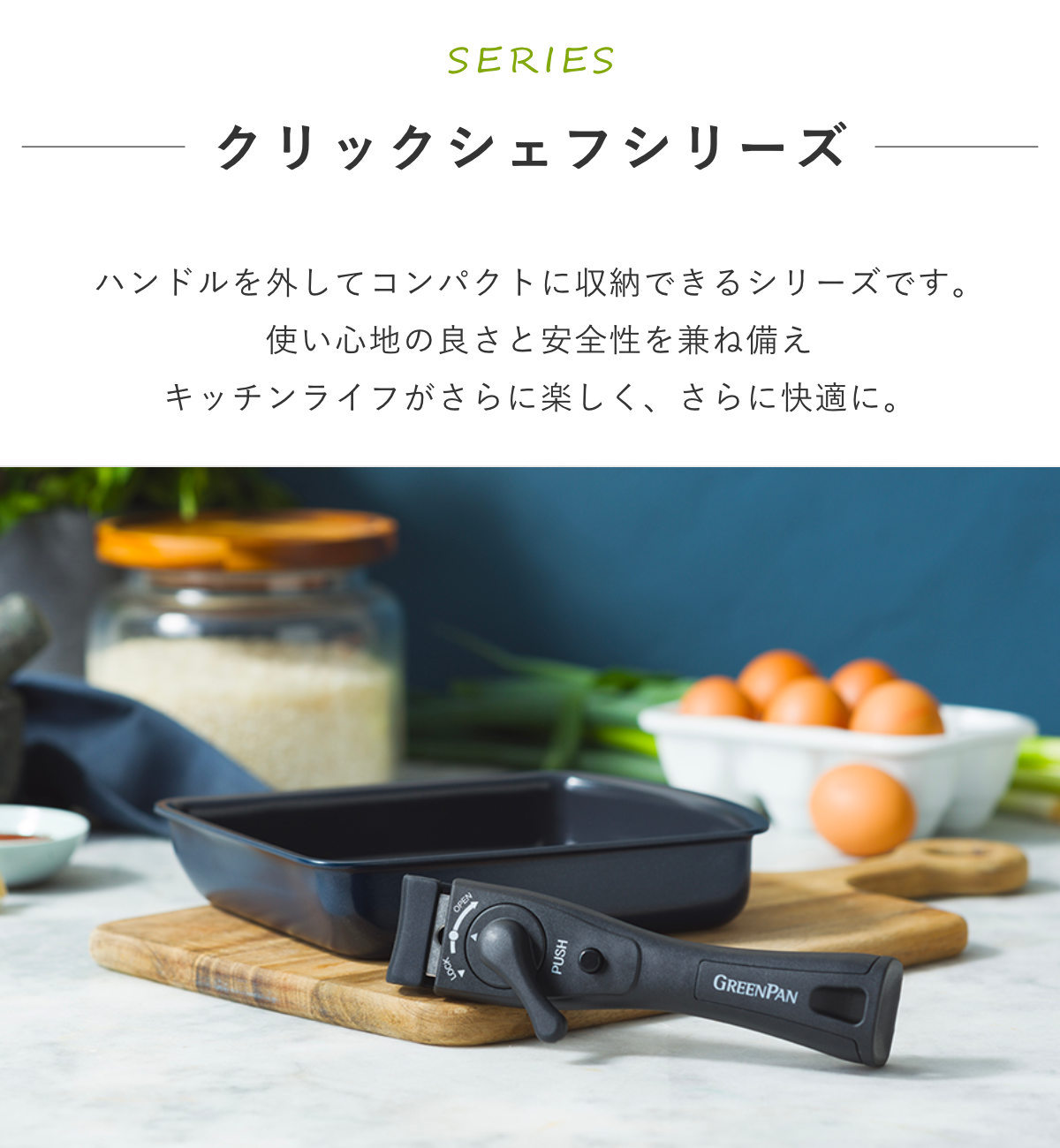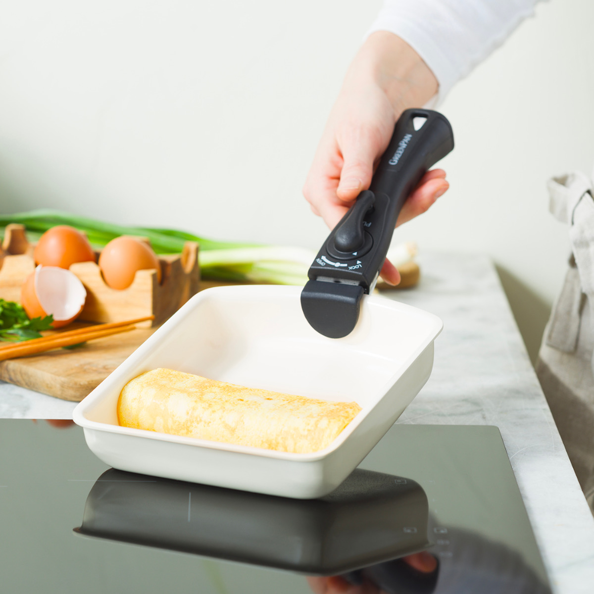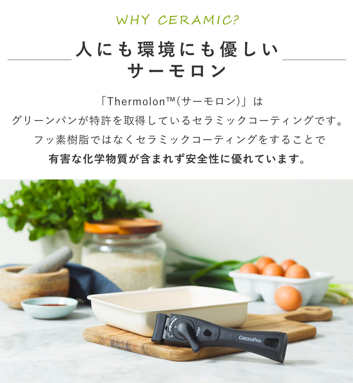 人体と環境に優しいグリーンパンのハンドル着脱タイプ
