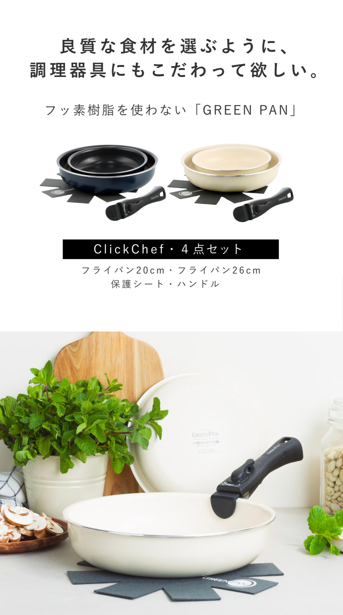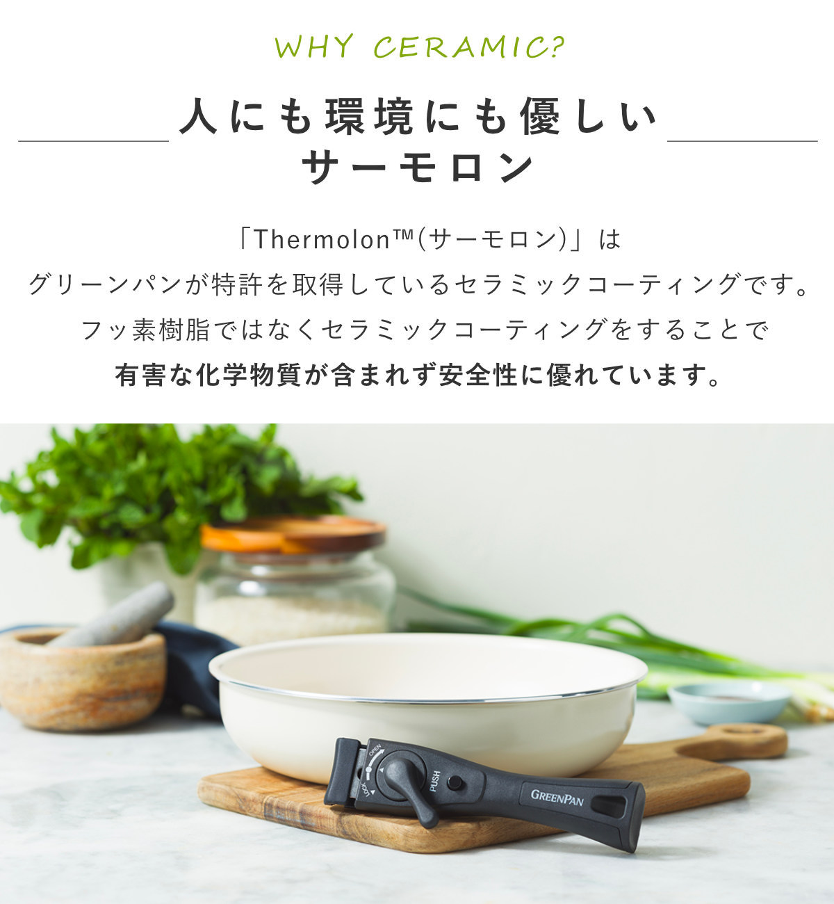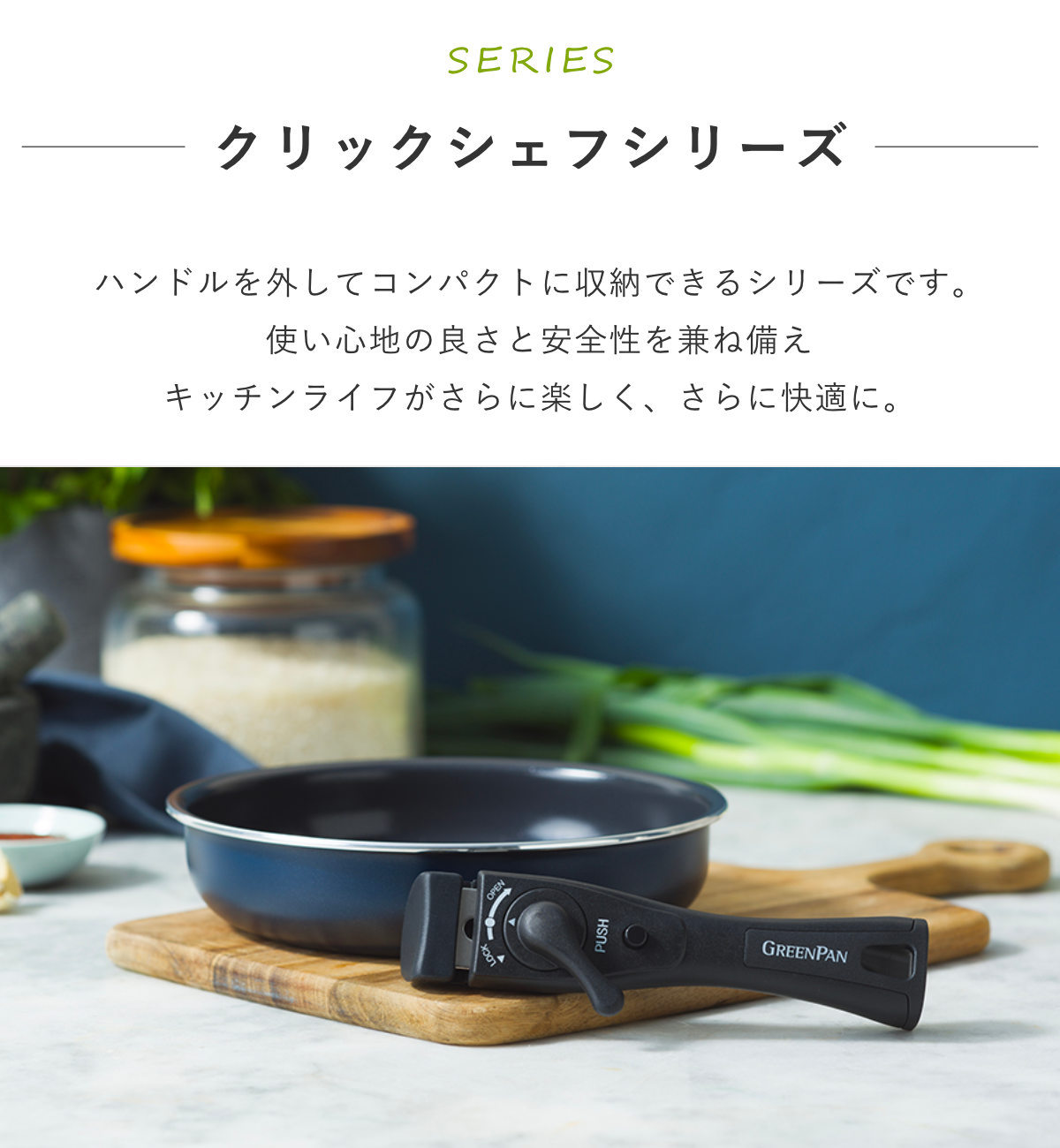 人体と環境に優しいグリーンパンのハンドル着脱タイプ