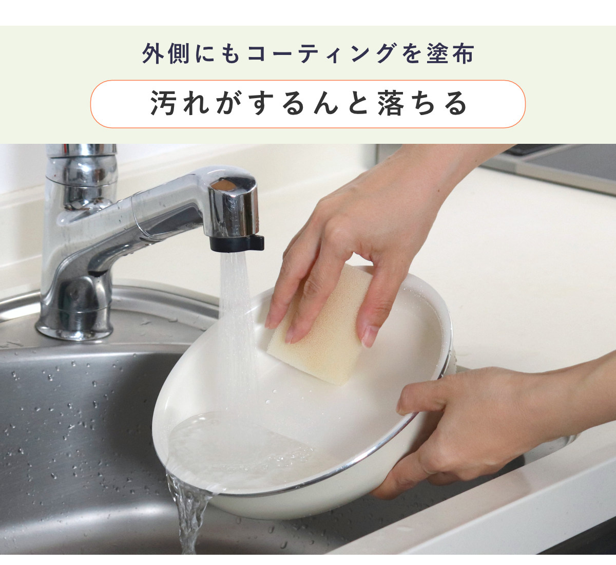 内側と同様に、外側にもセラミックコーティングを塗布しています。汚れが落ちやすく、日々のお手入れが簡単です。