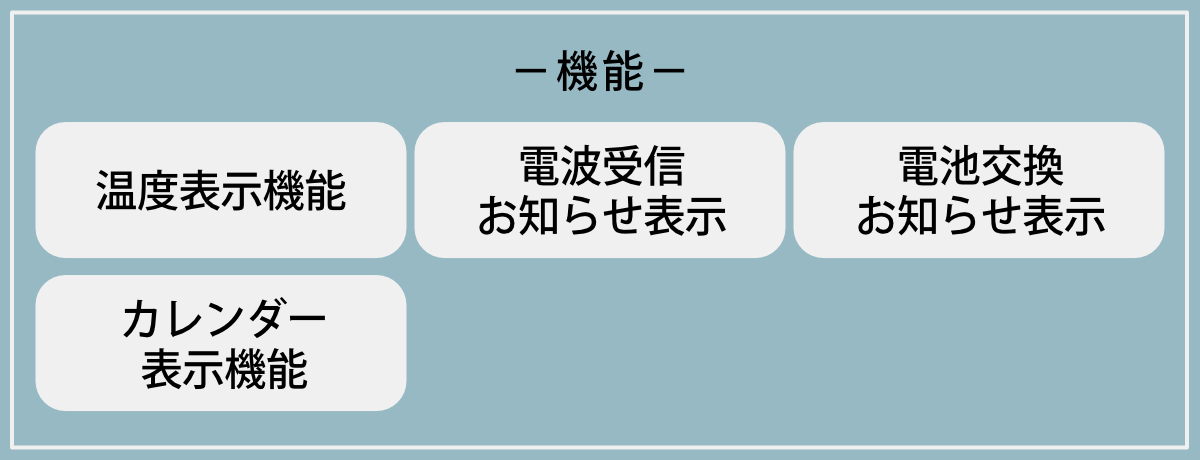 毎日の暮らしで便利なカレンダー、温度がひと目で確認できます。電池交換時期が近づくとマーク表示でお知らせします。