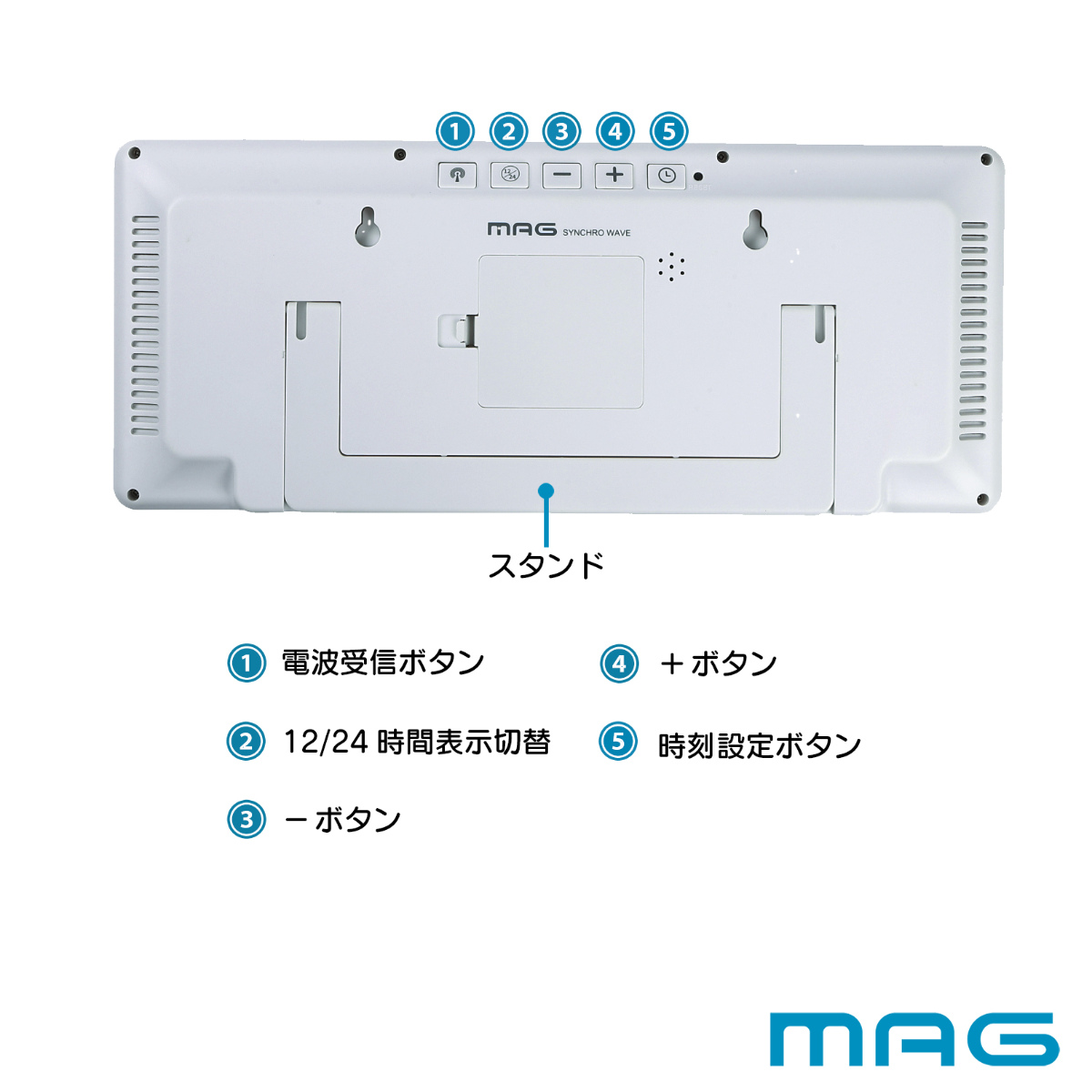 時計の背面にはスタンドが付属しており、置時計としても使用可能なので便利にお使いいただけます。
