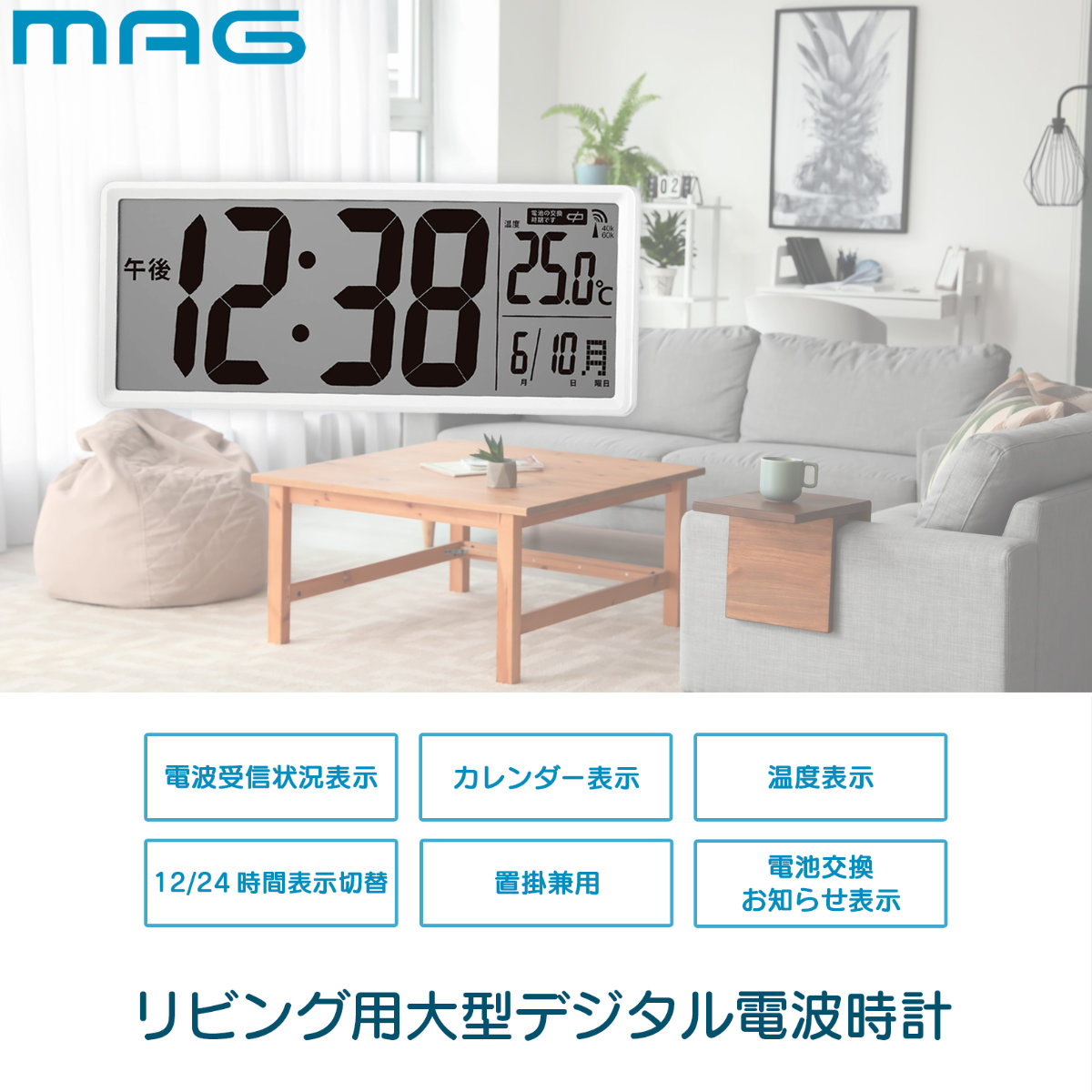 リビング用大型デジタル電波時計
