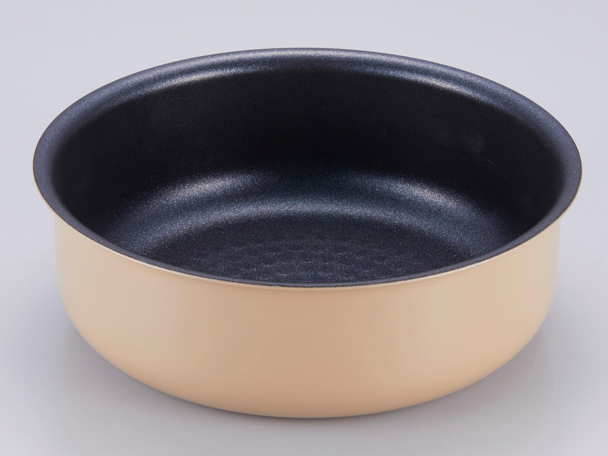| 材質 | 本体:アルミニウム合金 底部:ステンレス鋼 内面塗装:ふっ素樹脂塗膜加工 外面塗装:耐熱塗装加工 |