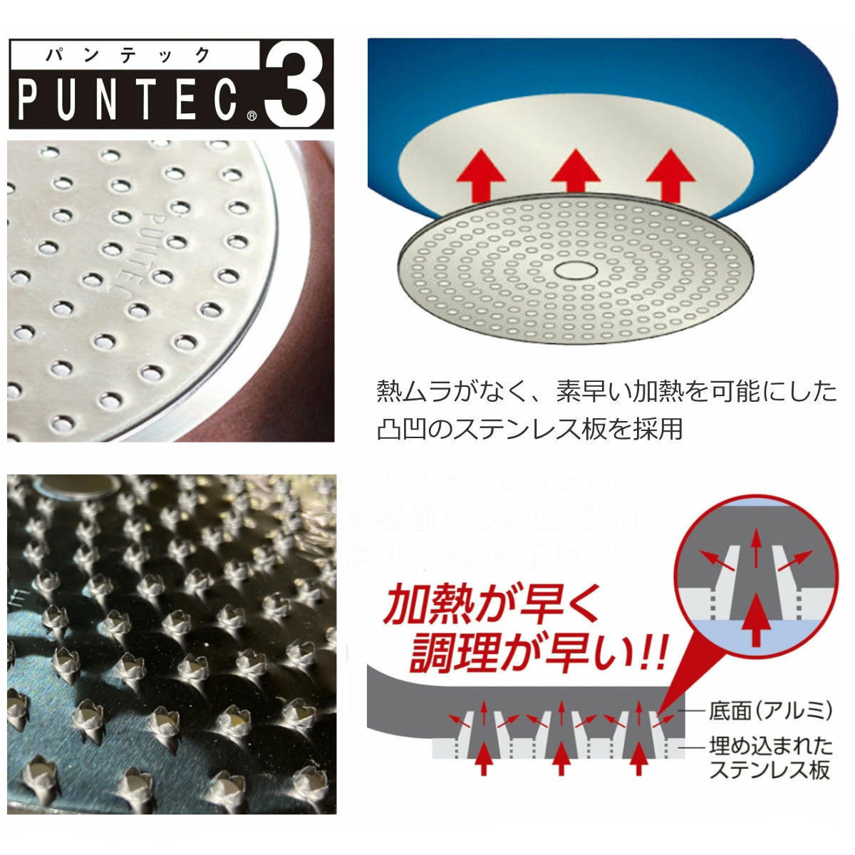 磁性ステンレス鋼の板面に凹凸(突起)を設けたパンテック構造により、突起部から熱を効率よく伝えます。加熱の立ち上がりが早く、熱ムラが起きにくいのが特長です。均一に火が通りやすく、焦げつきを抑えながら食材の美味しさを引き出します。