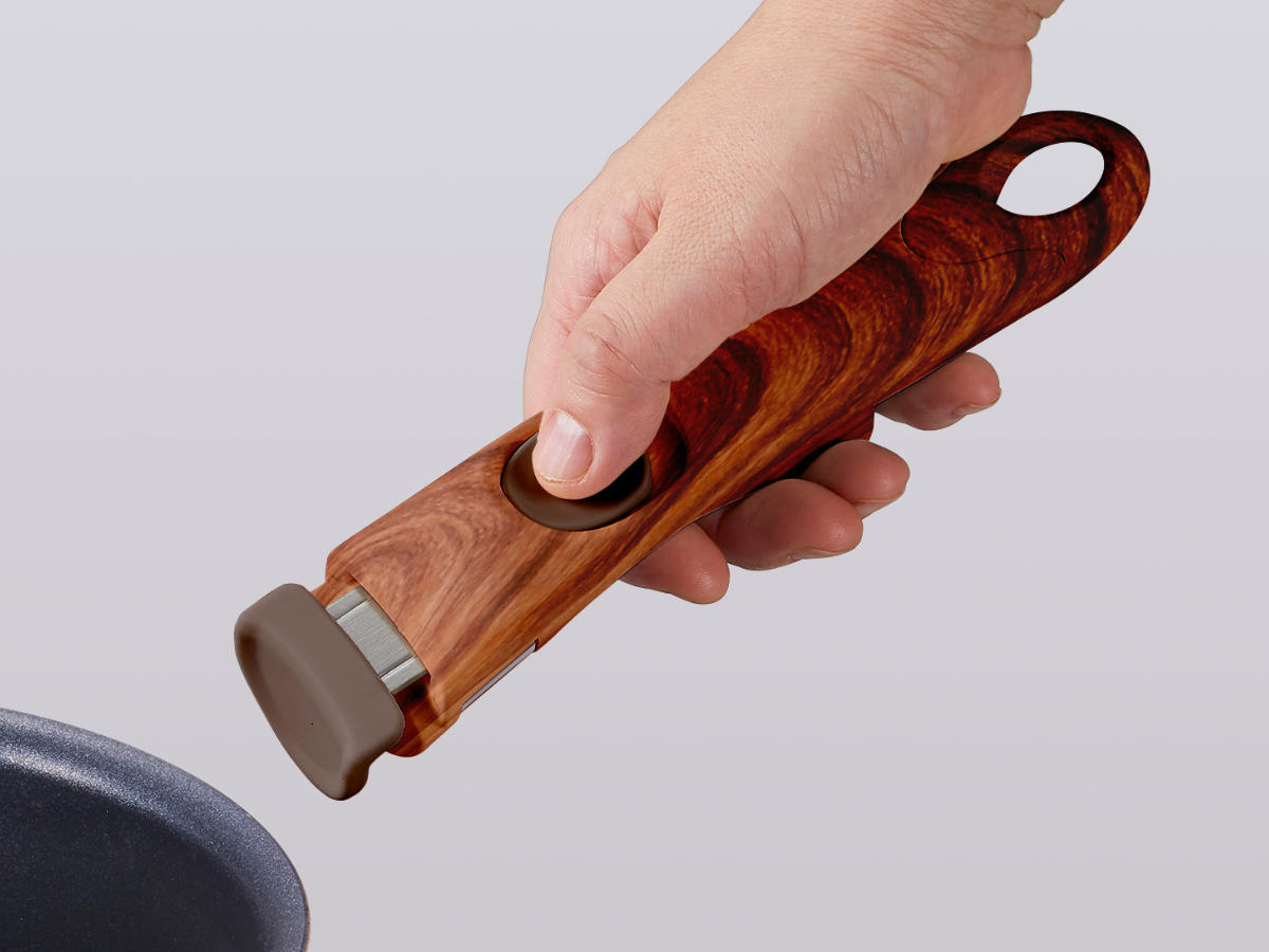 調理後はハンドルを外して、そのままお皿のように食卓へ出せます。盛り付けの手間や洗い物が減り、シンクでも場所を取らず隅々まで洗えて清潔に使えます。