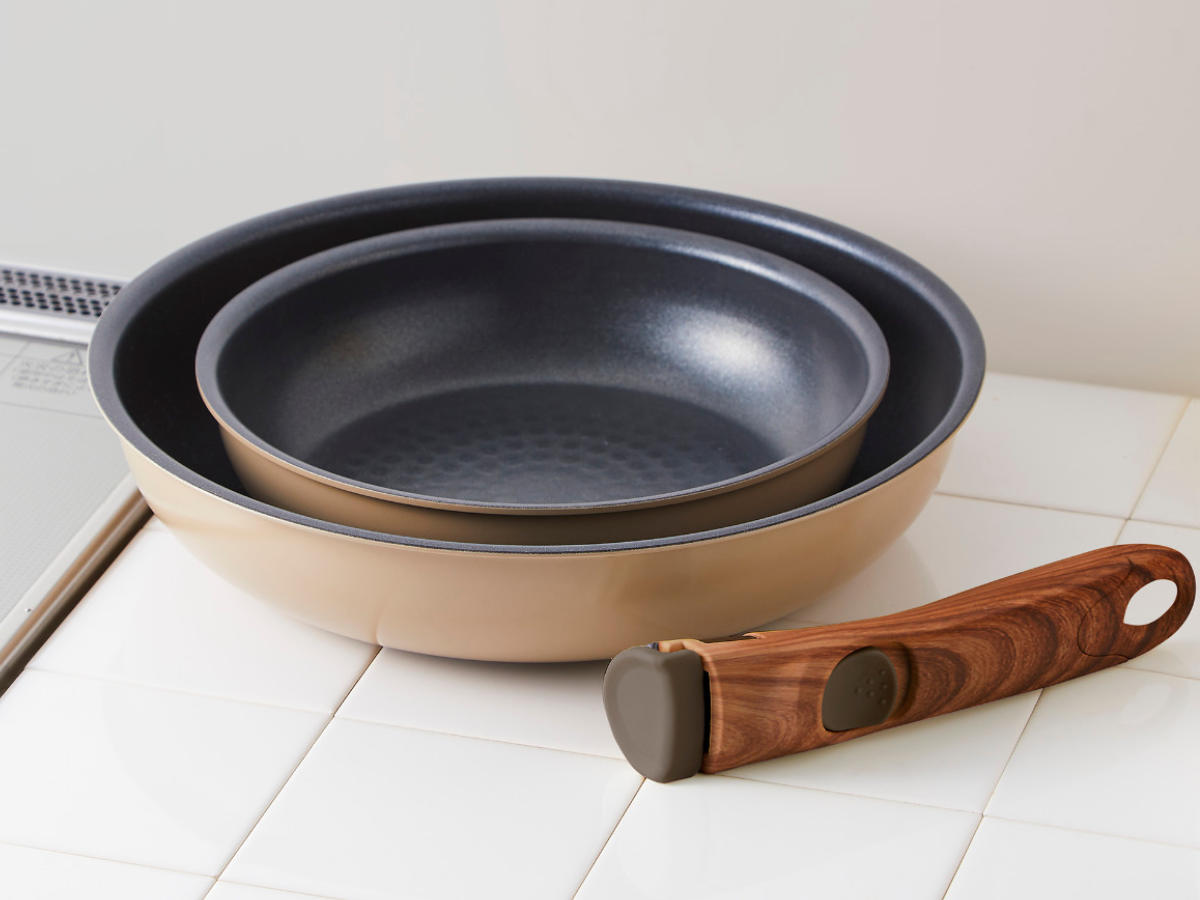 ハンドルを外すことで、フライパンや鍋を重ねてコンパクトに収納できます。シリーズでまとめても場所を取らず、キッチンをすっきり保てます。