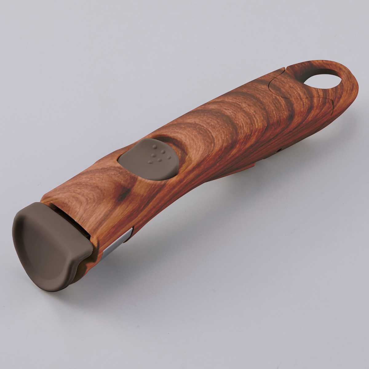 別売りの専用ハンドルは、片手で簡単に取り付け・取り外しが可能です。にぎりやすく、すべりにくいシリコーン製です。