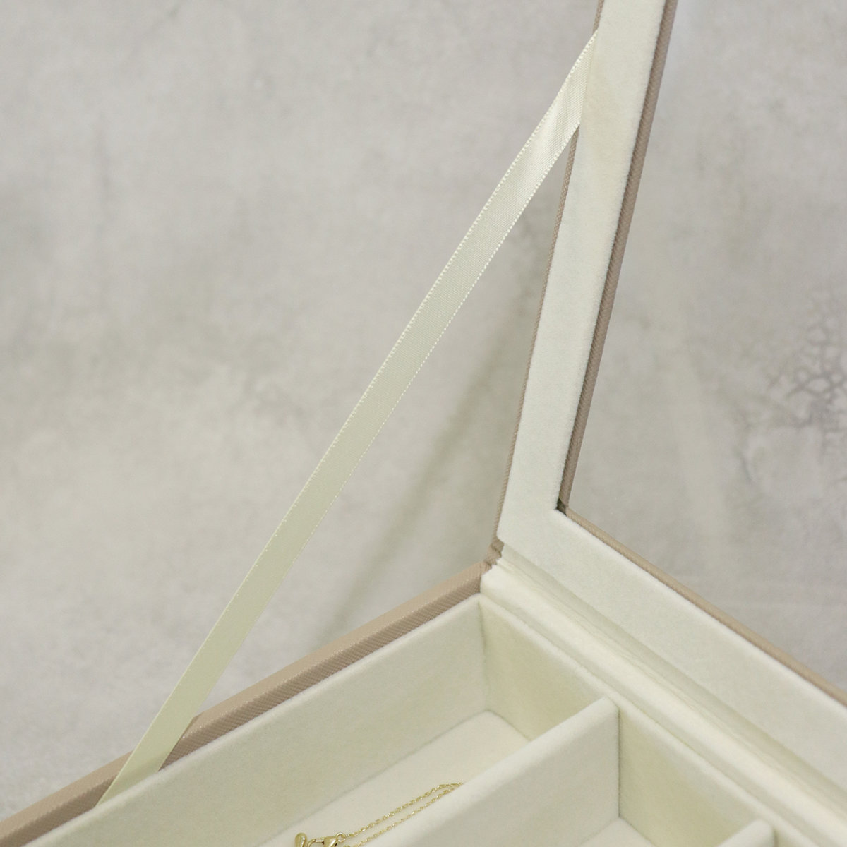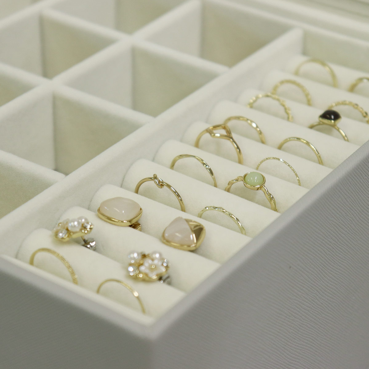 内装はベルベット素材で、大切なアクセサリー類を傷めず保管できます。