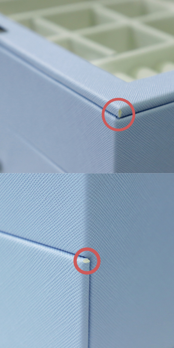 ※生地が合わさる箇所に裏地の白い生地が見えます。