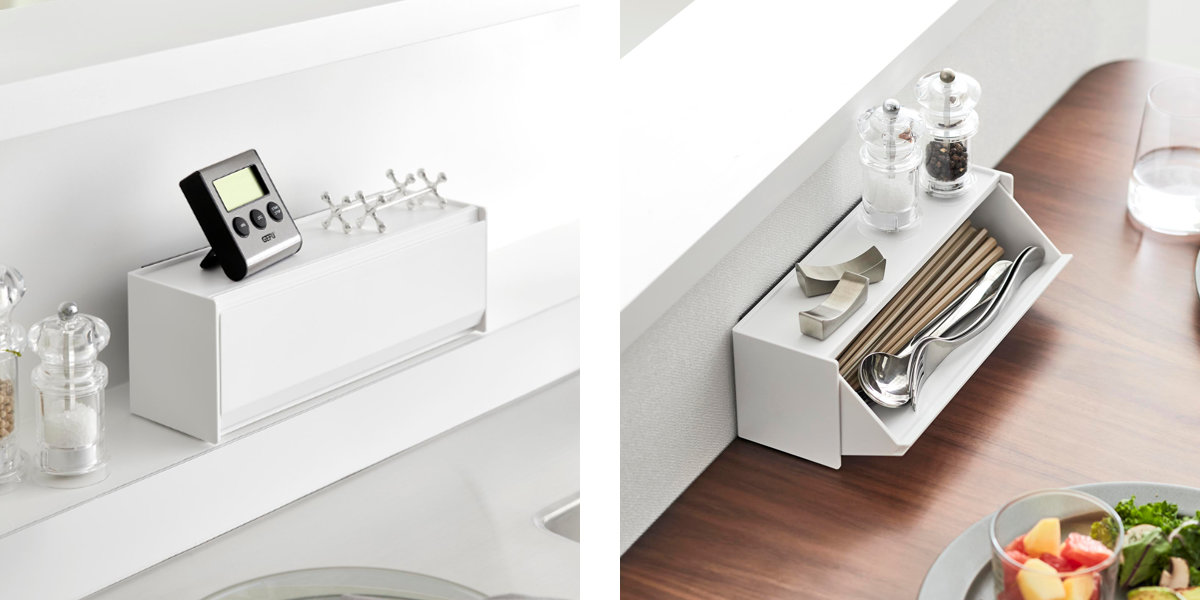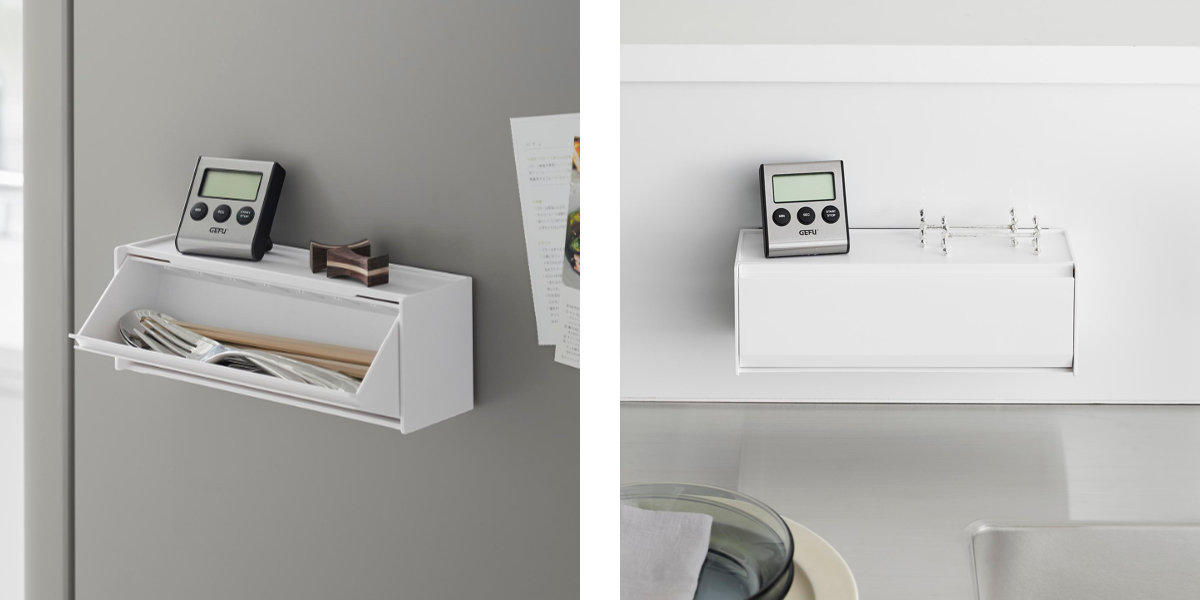 マグネットで簡単に取り付けられて、使いたい時にサッと取り出せる便利なカトラリーケースです。シンプルでスタイリッシュなデザインなので場所を選ばずスマートに設置できます。