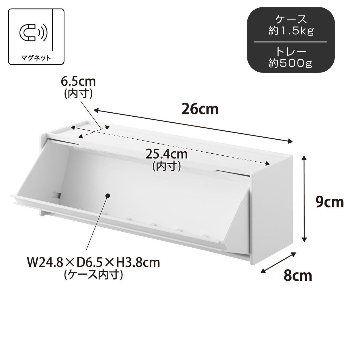 | 耐荷重 | ケース:約 1.5kg トレー:約 500g(静止荷重) |