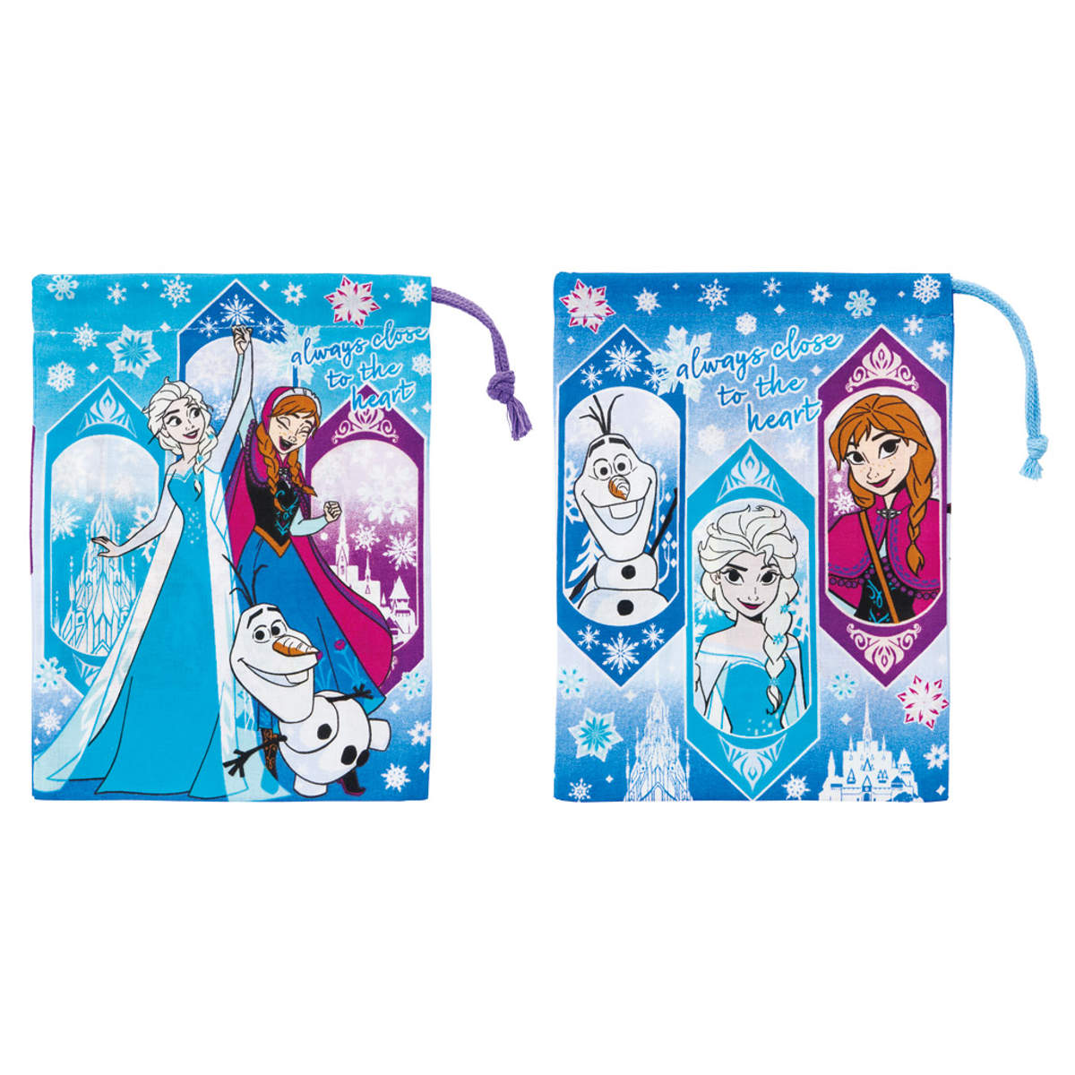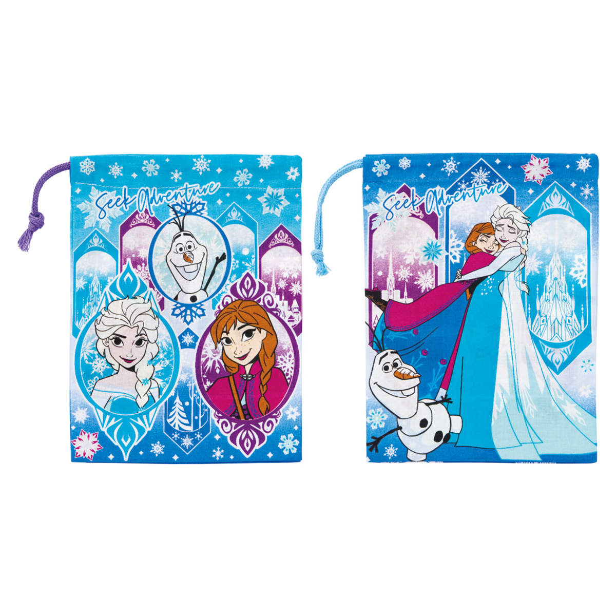 巾着袋には表と裏で異なるデザインがプリントされています。両面のデザインが違うので、どちらの面でもお楽しみいただけます。