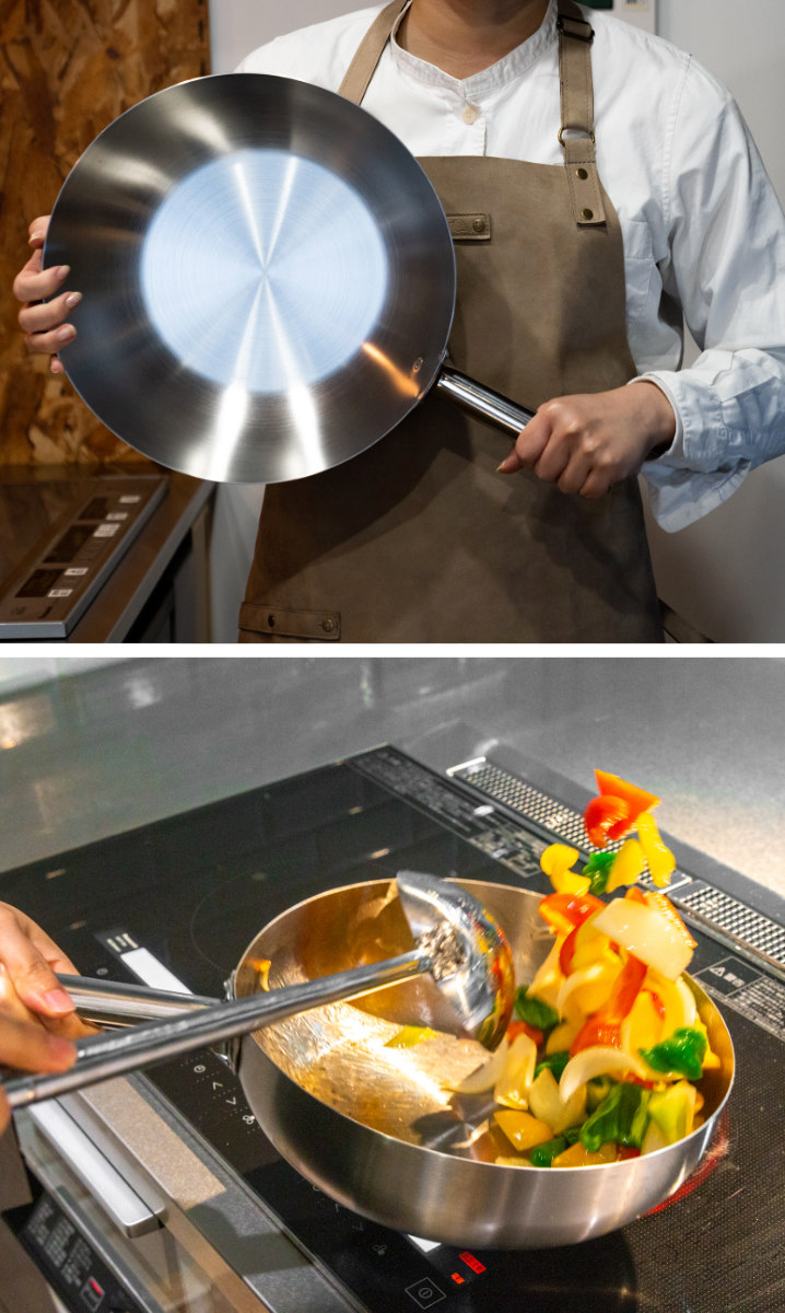 アルミとステンレスのクラッド技法で「軽量」「IH対応」「素早い加熱」を実現。