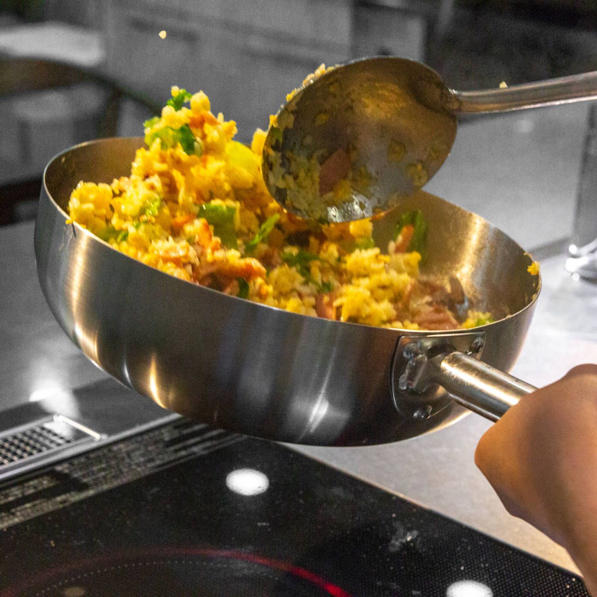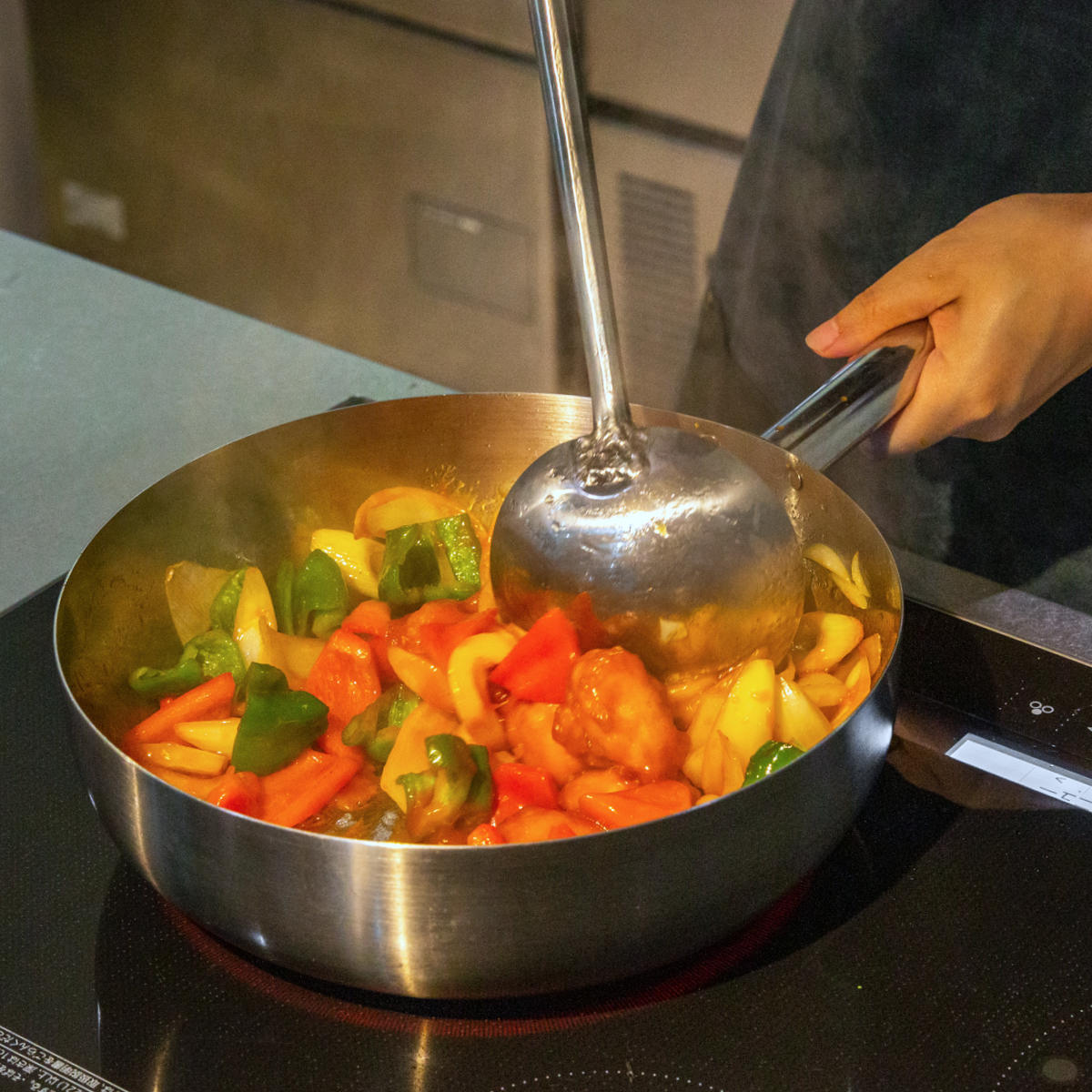 深さがあるのでたくさん入れてもこぼれにくく、炒めやすいです。また炒め料理だけでなく、煮込み料理などにも使いやすく、オールマイティに活躍します。