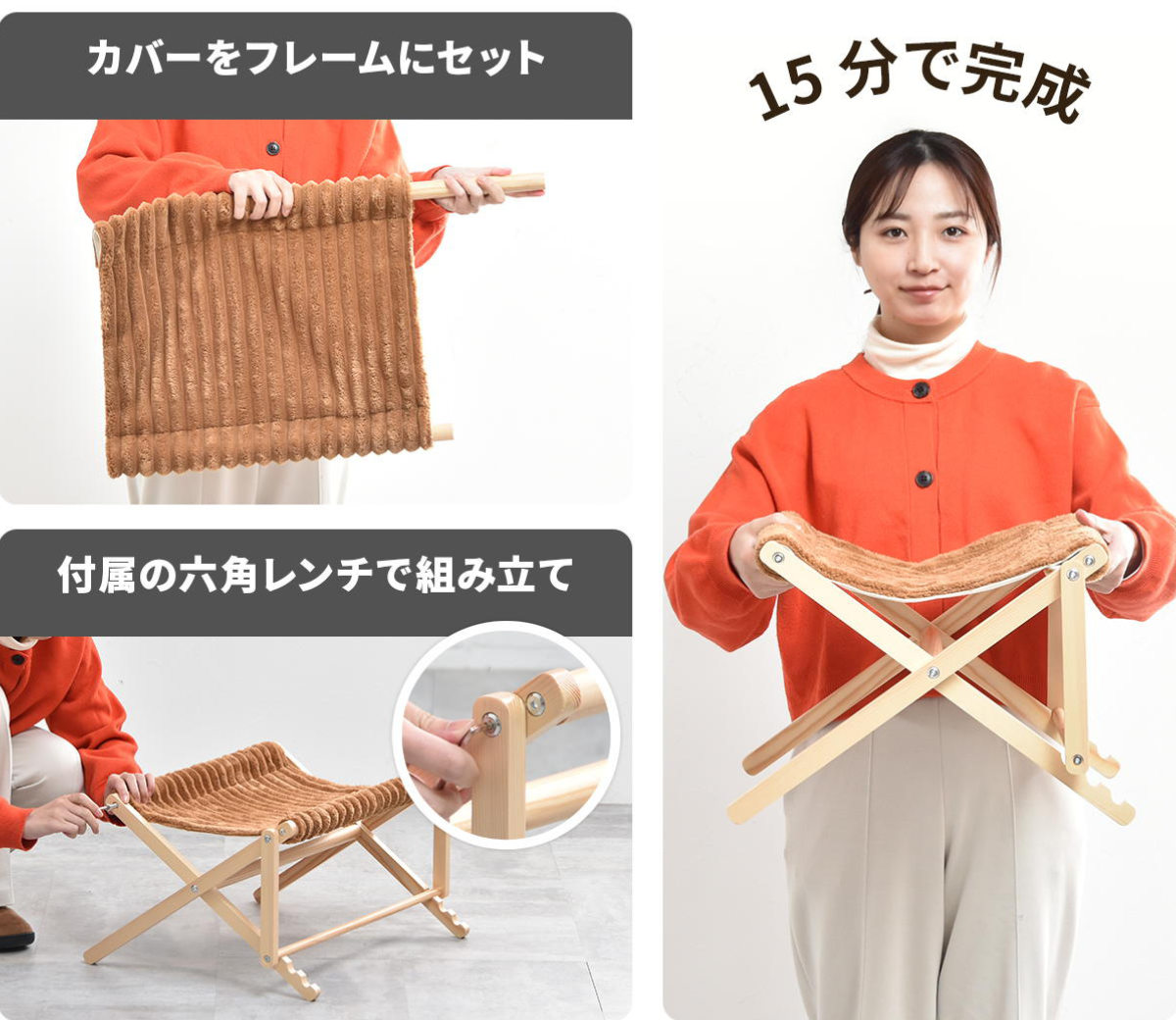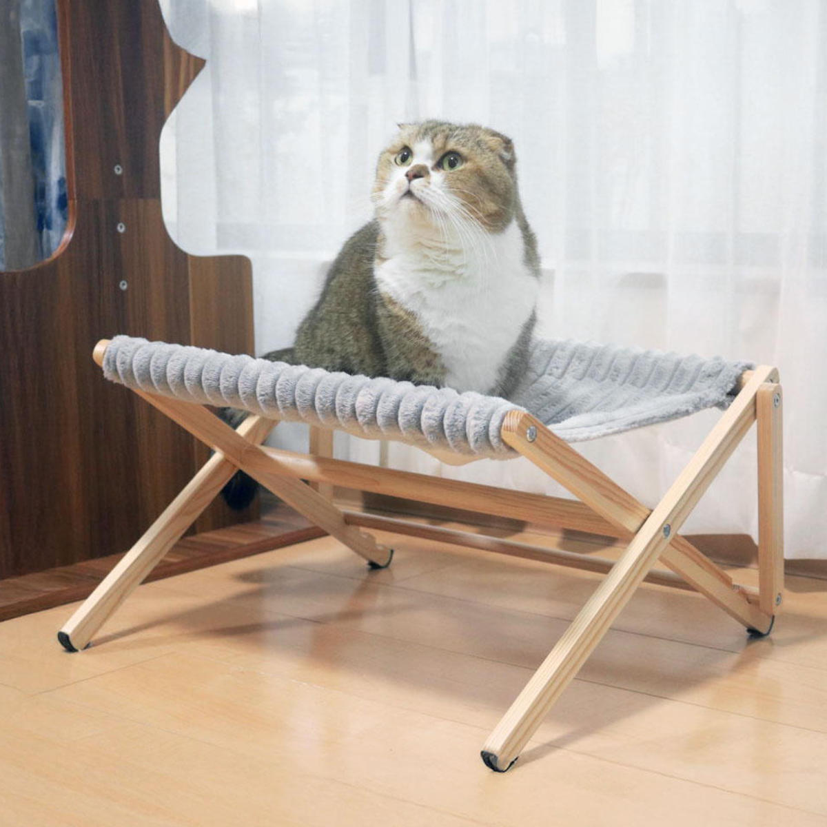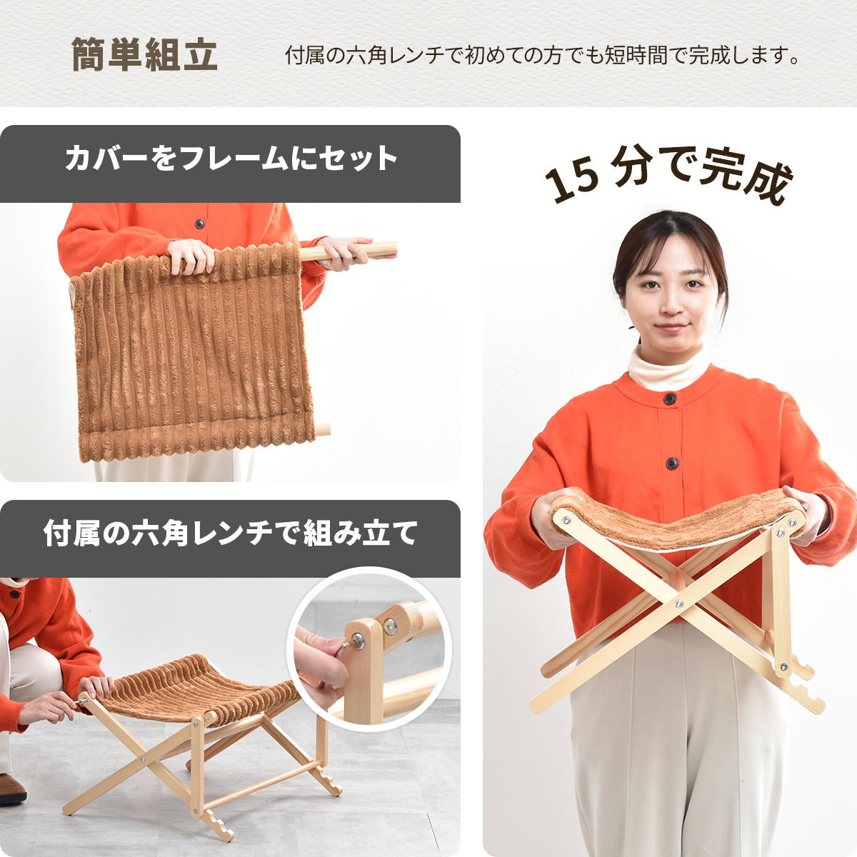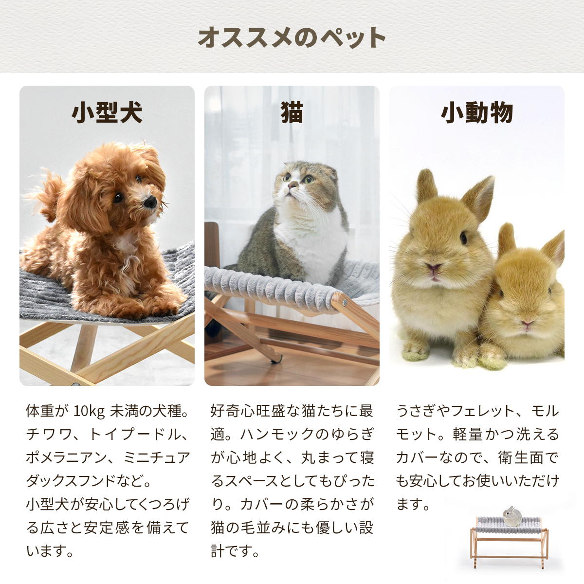 木目が優しいパインの天然木フレームです。小型犬が飛び乗っても揺れすぎず、転倒しにくい設計なので安心して使用できます。滑り止め付きで床を傷つけにくいです。