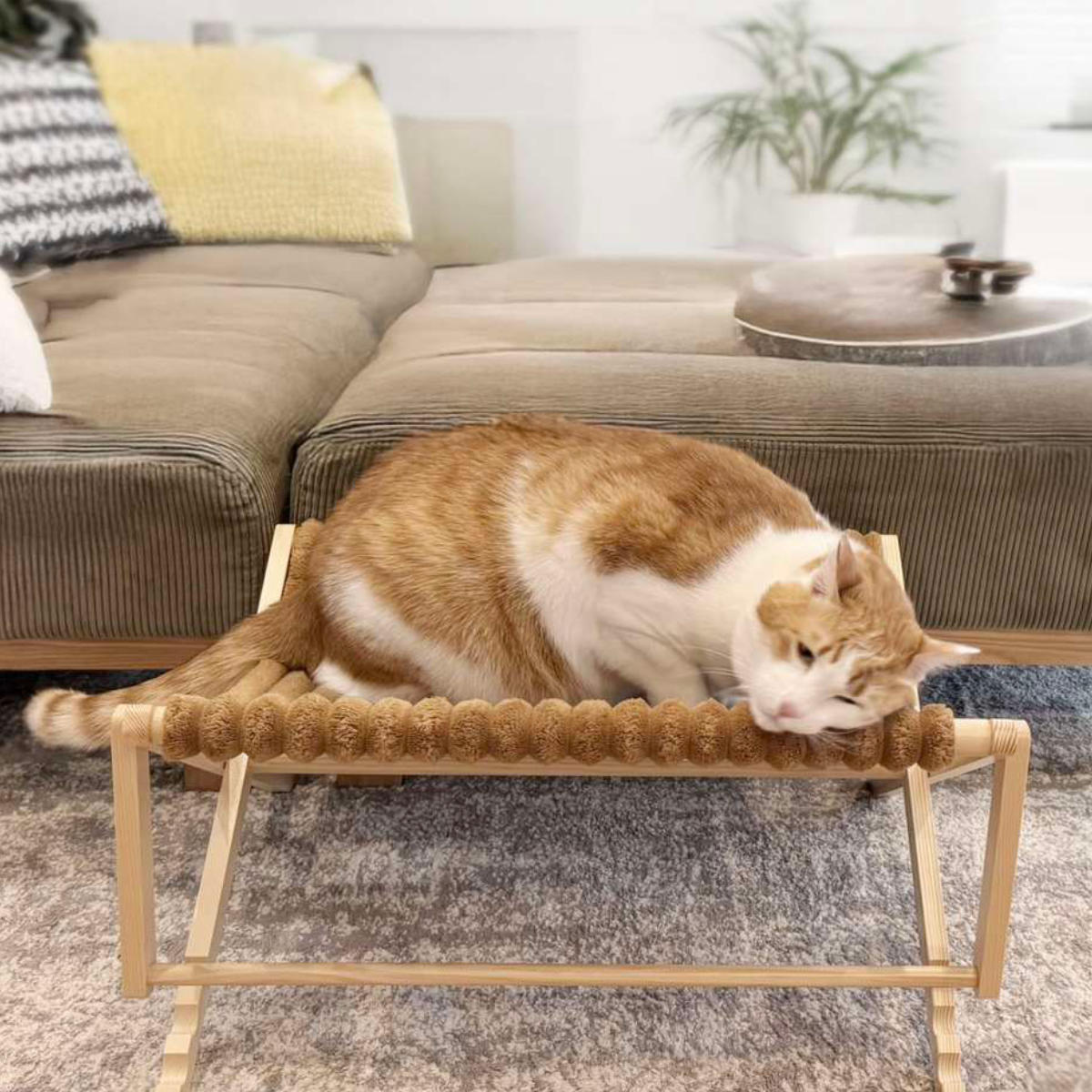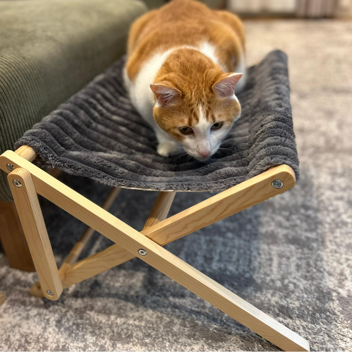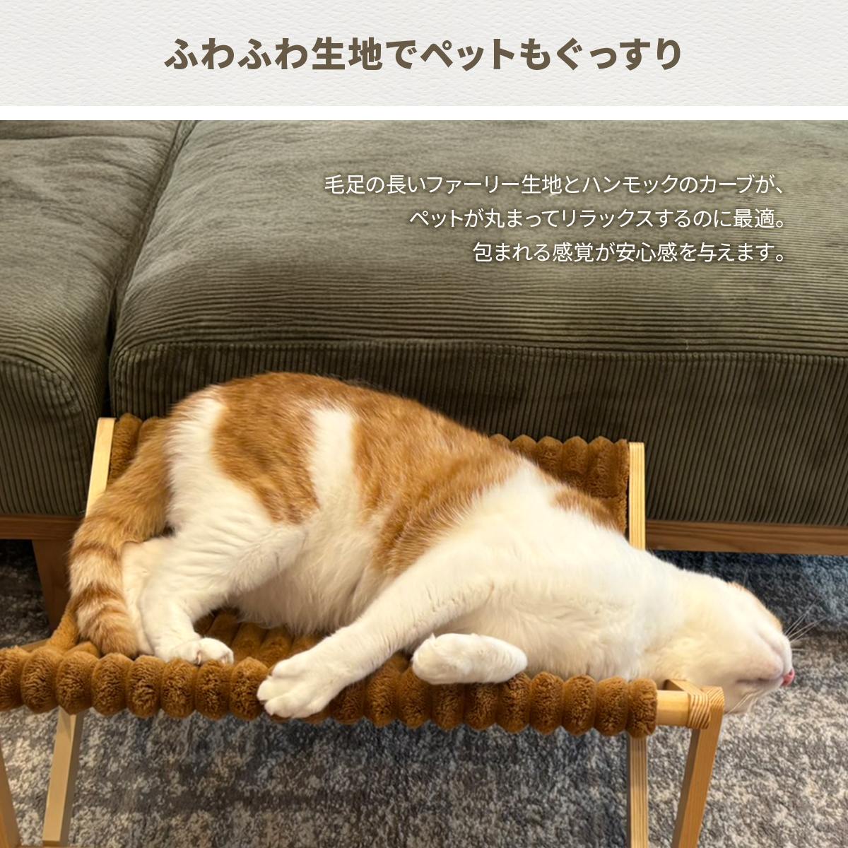 ゆらぎとカーブで、ペットが丸まってリラックスするのに最適なハンモックです。包まれる感覚が安心感を与えます。小型犬、猫、小動物におすすめです。