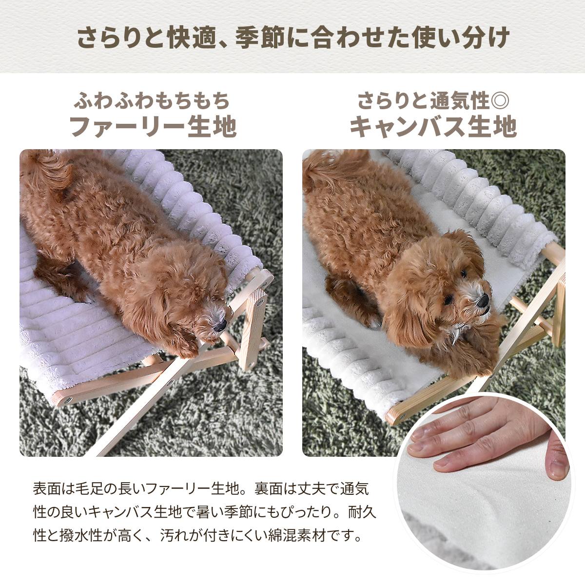 カバーの表面は毛足が長くふんわり柔らかいファーリー生地、裏面はさらりとした肌触りの暑い季節にぴったりなキャンバス生地を使用しています。耐久性と撥水性が高く、汚れが付きにくい綿混素材です。