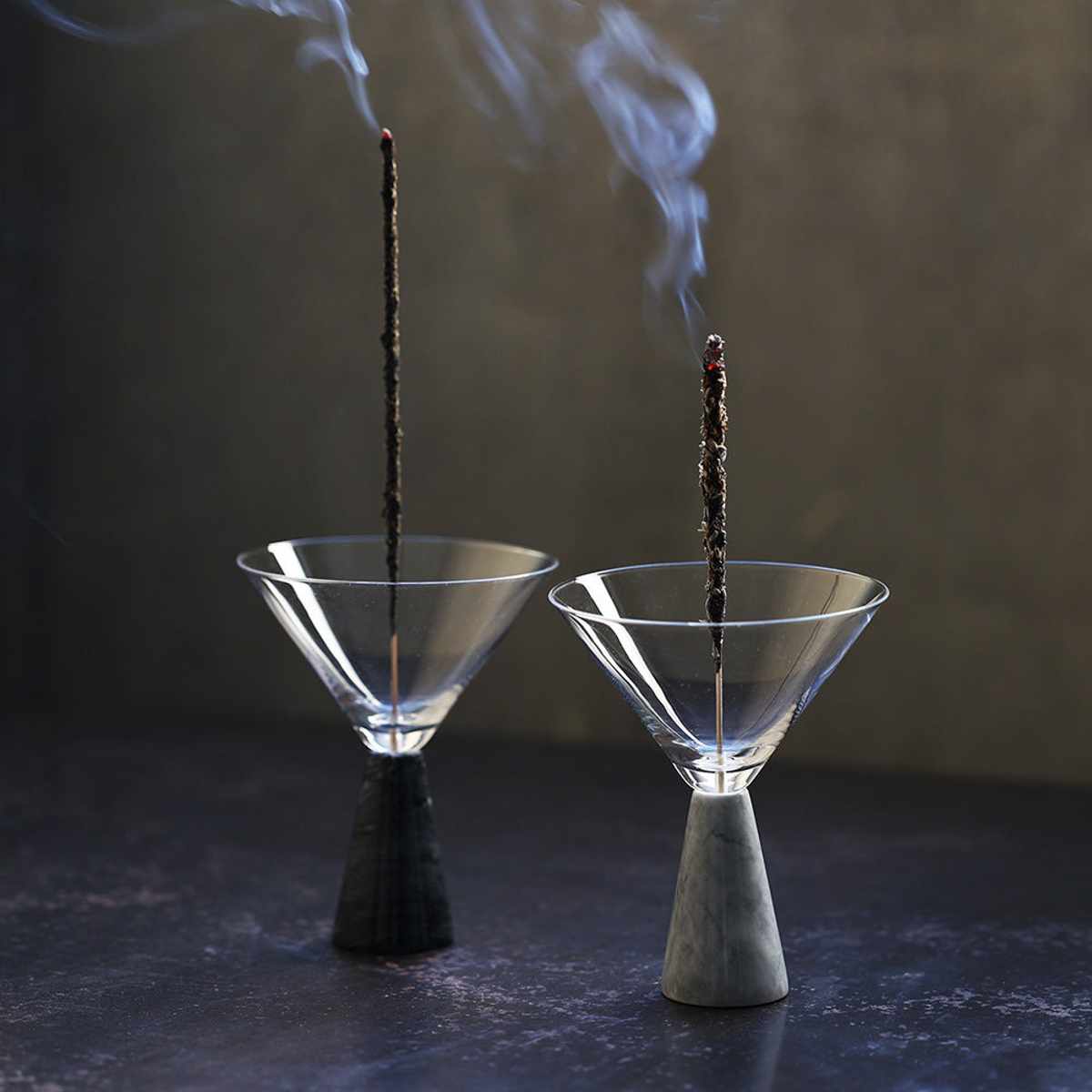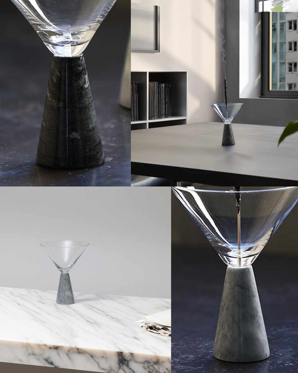 自然が作り出した美しい大理石の模様が、ガラスの透明な輝きと調和し、置かれた場所を格上げします。お香を焚いていない時でもオブジェとしてもお使いいただけます。