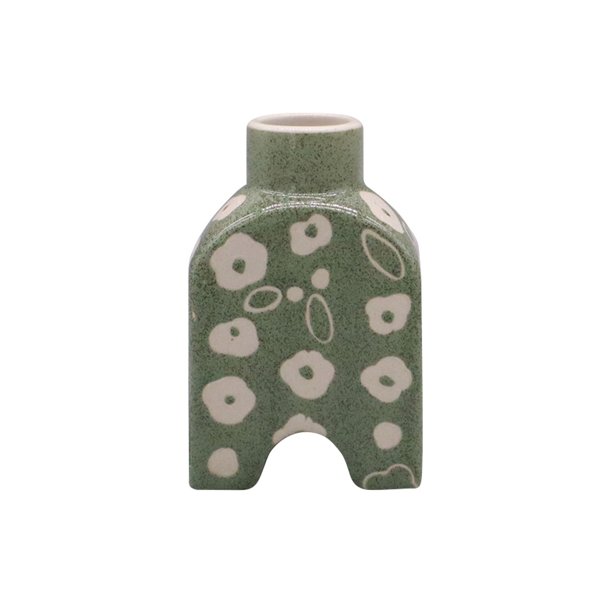 東欧風の絵柄がかわいい小さなセラミックベースです。オブジェとしてお部屋にさりげなく飾っておくだけでも雰囲気のある空間を演出してくれます。