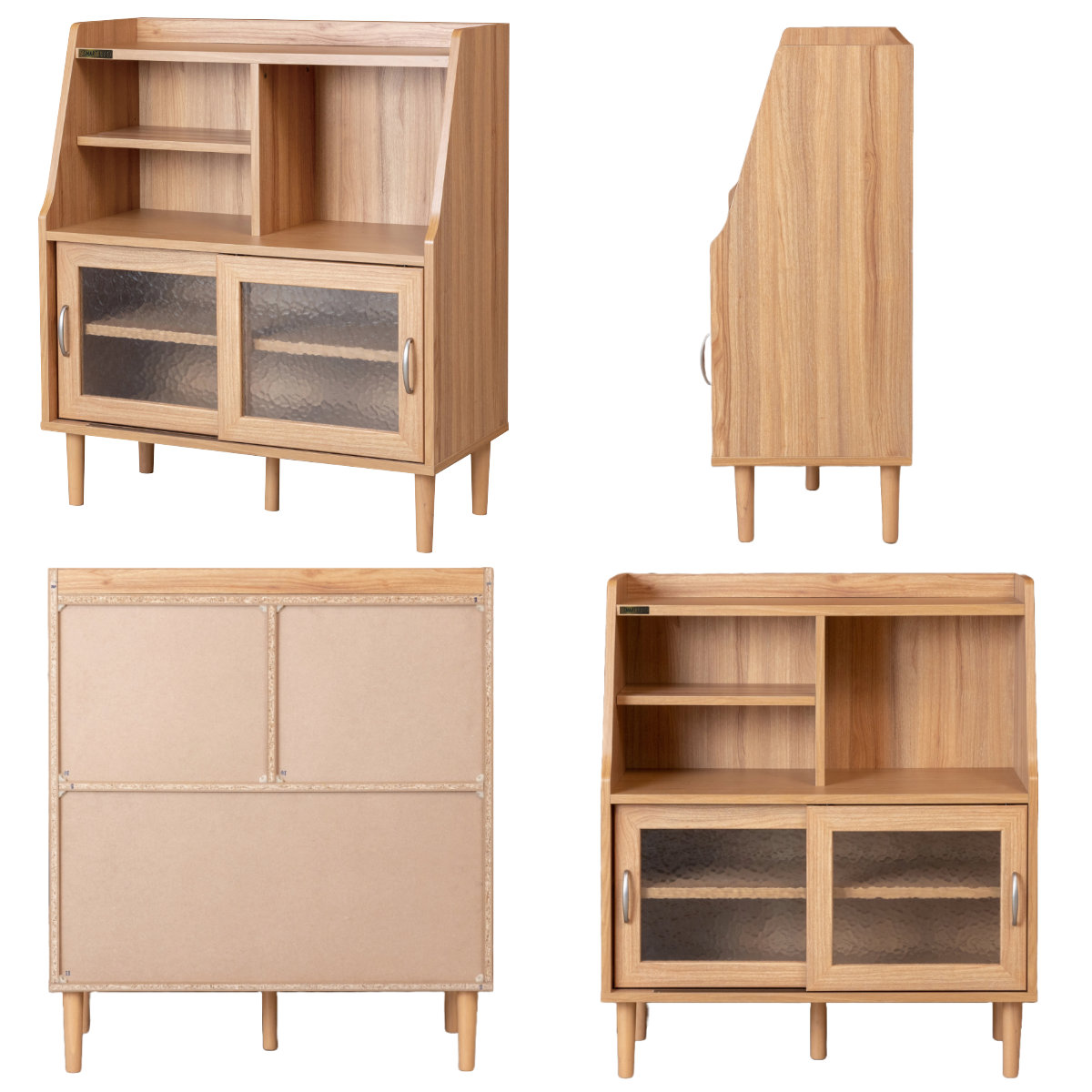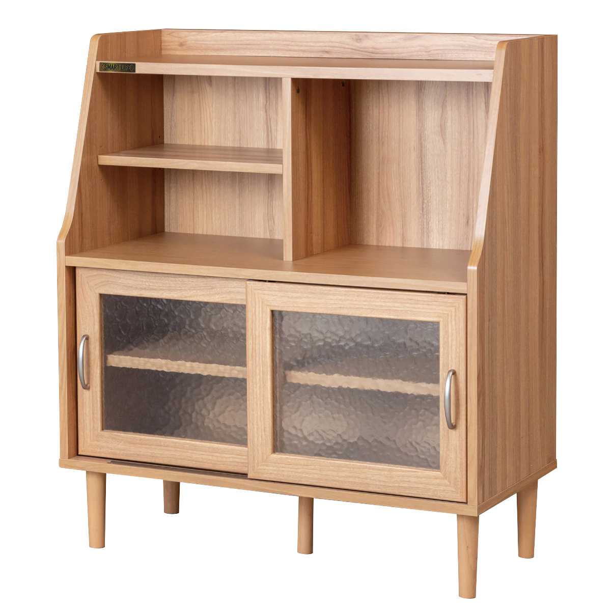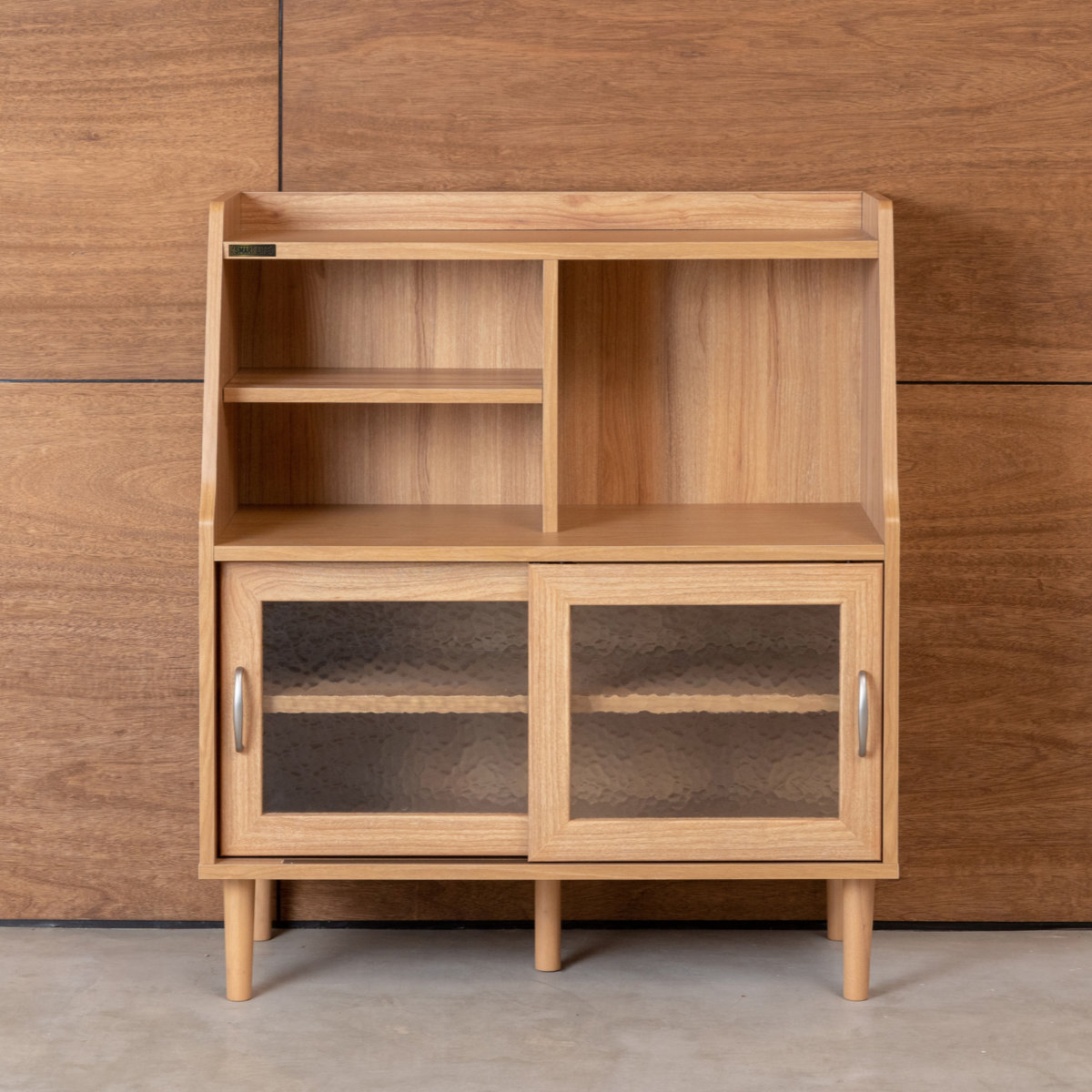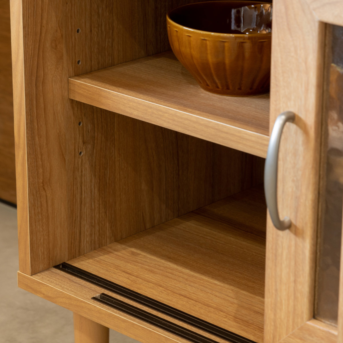 モザイクガラスと丸みのある持ち手がアクセントのガラス扉です。懐かしさを感じさせるモザイクガラスが扉内をぼかすので生活感を隠してスッキリと収納して頂けます。