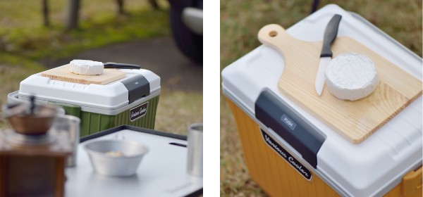 蓋がフラットな形状なので、簡易テーブルとして使用できます。外でテーブルがない時でも、蓋の上で簡単な調理や、食卓のように使えるので大変便利です。
