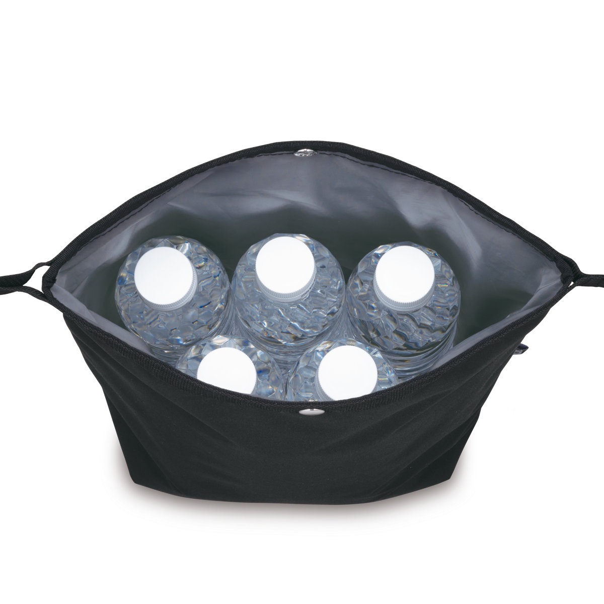 ●携帯性を重視したロールトップタイプです。キャリーワゴンやチェアに引っ掛けられるので、アウトドアでも置き場所に悩みません。
