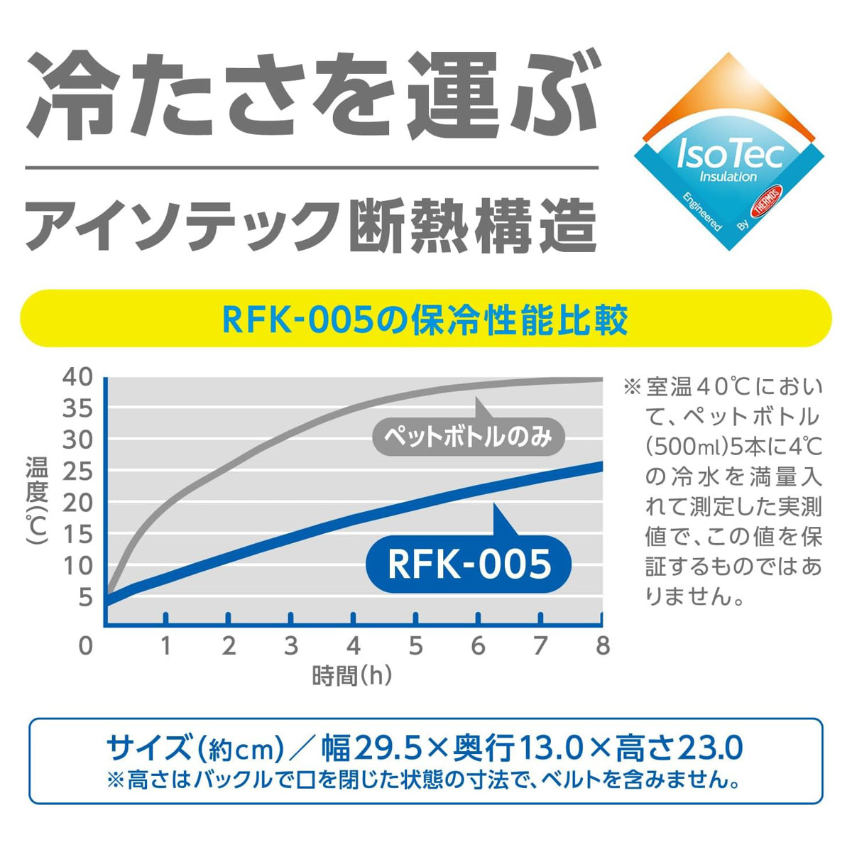 複数の材質を組み合わせた「アイソテック2」の断熱構造で、冷たさをキープ。また、長時間経って凍らせたドリンクや保冷剤が溶けてしまっても、カバンの中の荷物が濡れないので安心です。