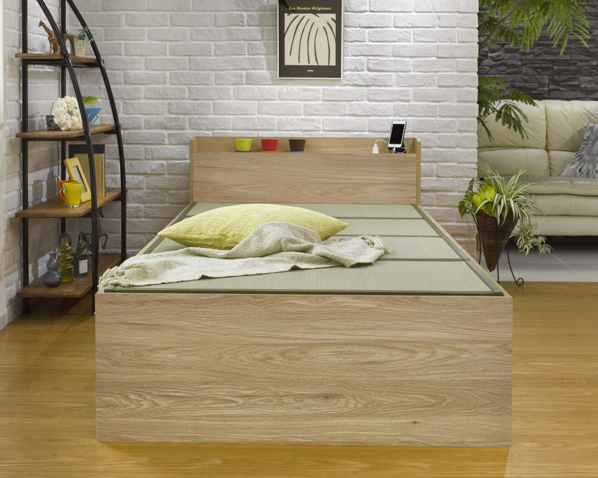 天然い草香りが爽やかな畳ベッドです。畳は、ホルムアルデヒドなどの有害な気体を吸着・除去する効果があるので、小さなお子さまやアレルギーが気になる方にも安心してご使用いただけます。うっかりぶつけてしまいそうなフレームの角は丸く加工し、万が一の際にもケガをしにくい優しい仕様です。