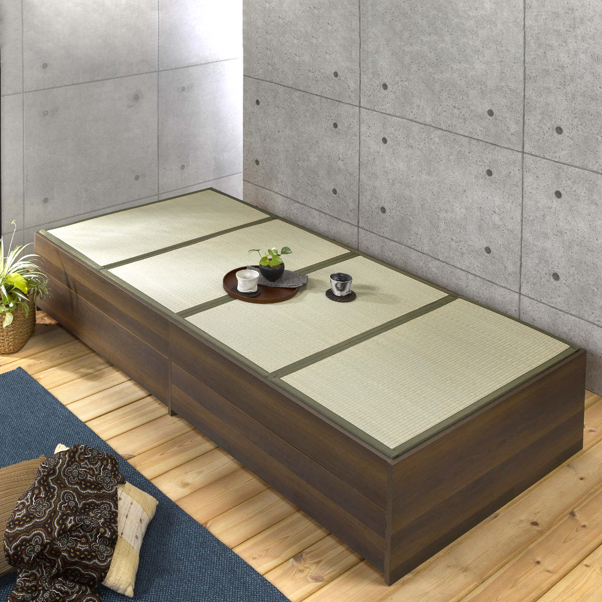| 材質 | フレーム:プリント紙繊維化粧板、積層合板、天然木(脚部) 畳マットレス:表地/い草100% 中材/フェルト 裏地/不織布(滑り止め加工付き) |