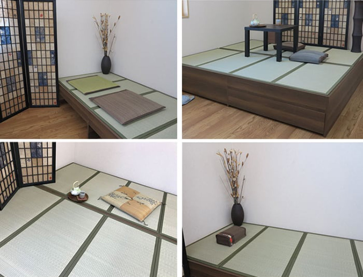 1台でベンチにしたり、2台並べて小上がりを作ったりと、お部屋の一角に簡単に和のくつろぎ空間をつくることができます。