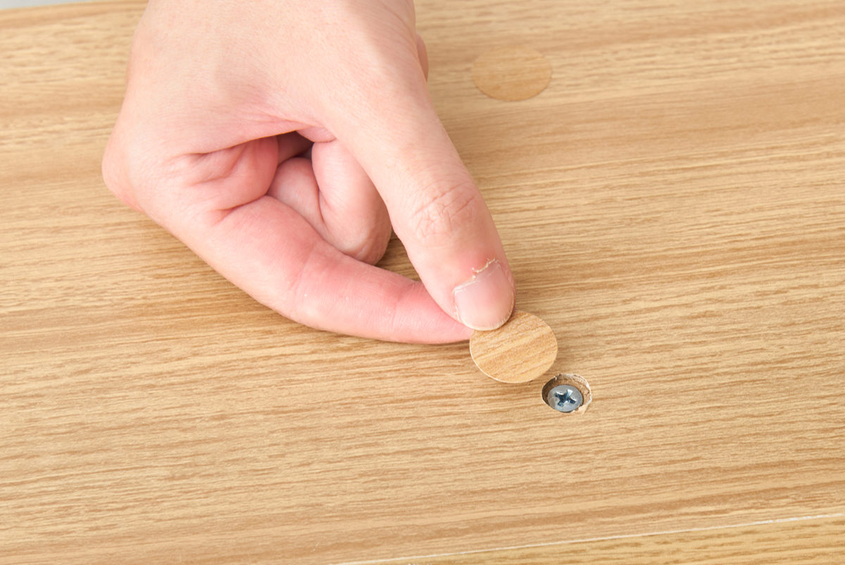 ネジが見えて不格好にならないための、ネジ隠しシールが付属しています。必要であれば貼り付けてお使いください。