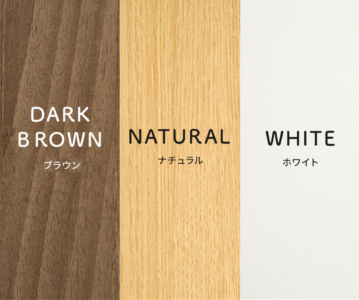 シックで重厚感のあるブラウン、温かな風合いのナチュラル、明るく清潔感のあるホワイトの3種類。ベーシックなカラーリングとシンプルなデザインで、どのカラーもインテリアに合わせやすいです。