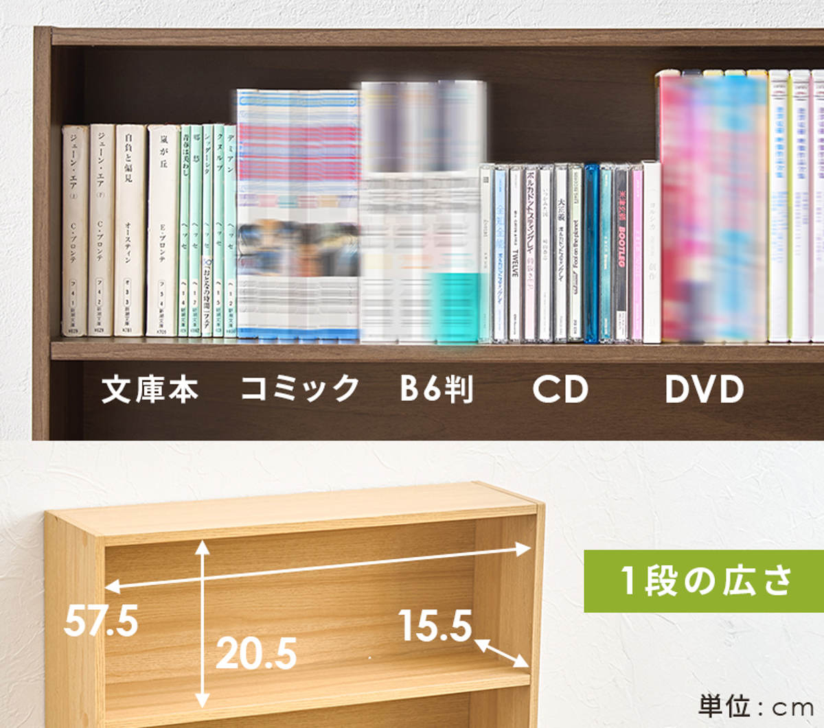 幅60cmとコンパクトなサイズ感でありながら、コミック約156冊を収納することができます。