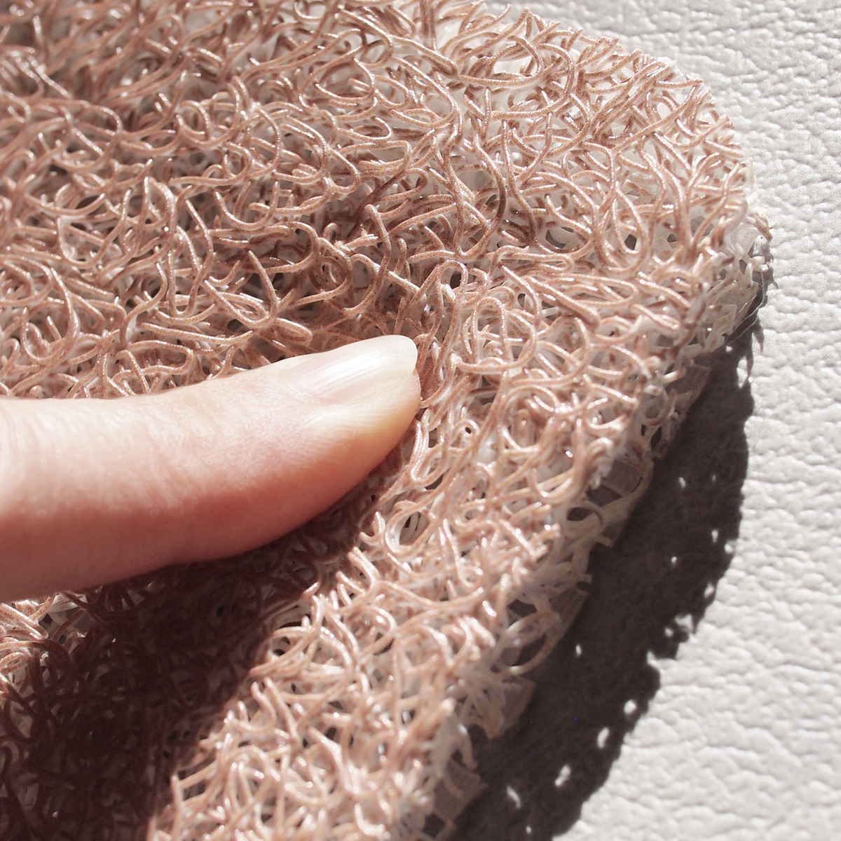 メッシュ生地を採用しているため、隙間から細かい土や砂が落ち、水はけも抜群なので雨の日でも安心してお使いいただけます。日差しに強い耐久性のある素材なので、玄関だけでなくテラスやベランダなどの屋外スペースにも最適なマットです。