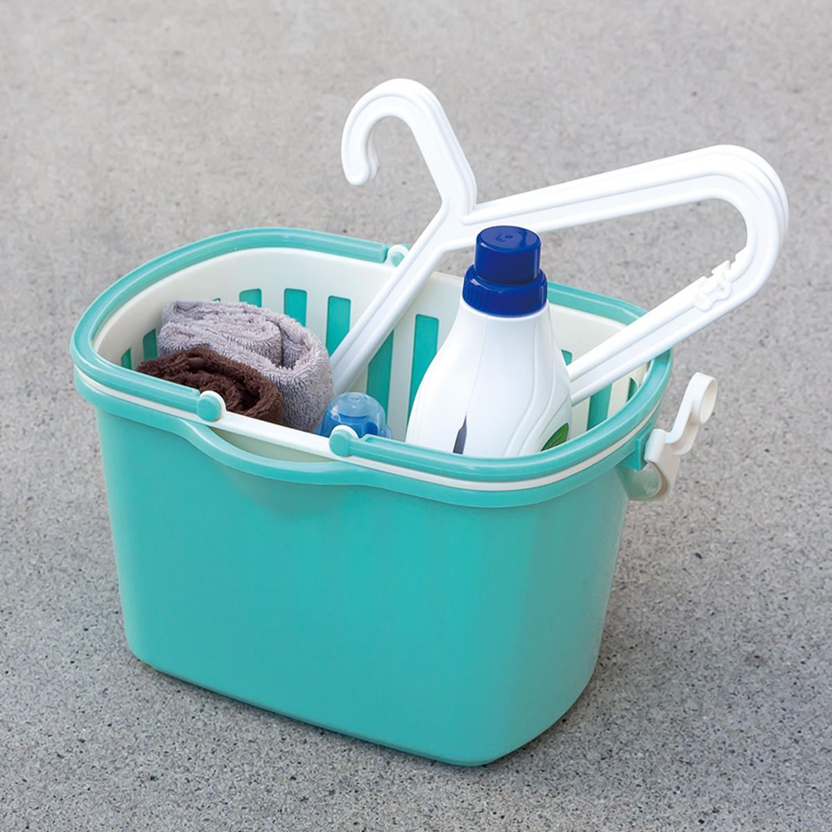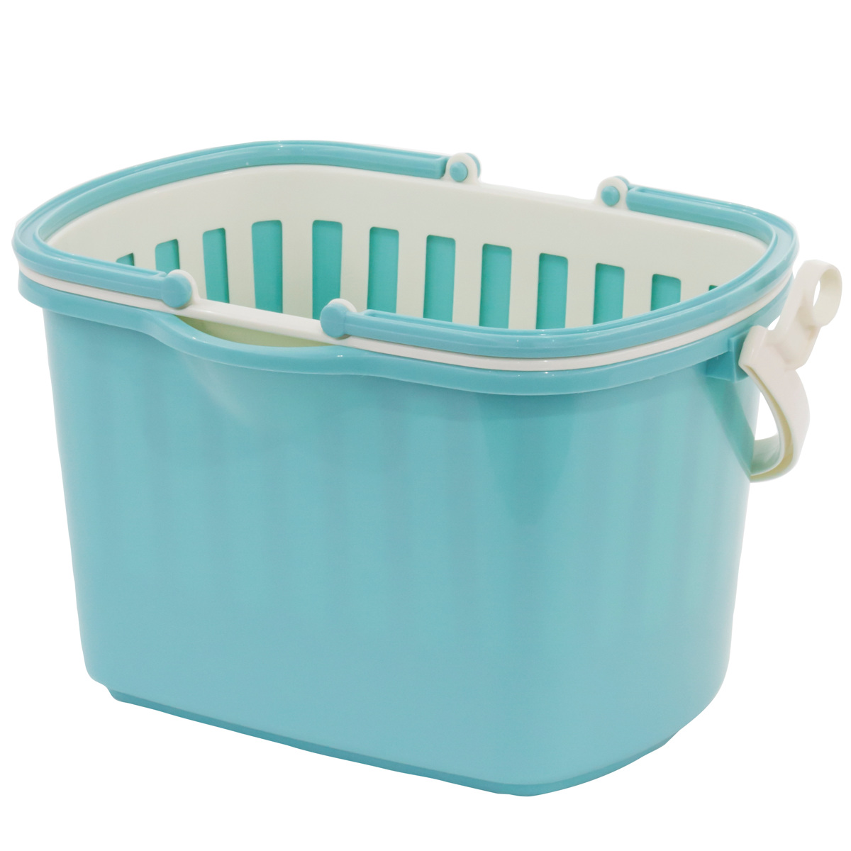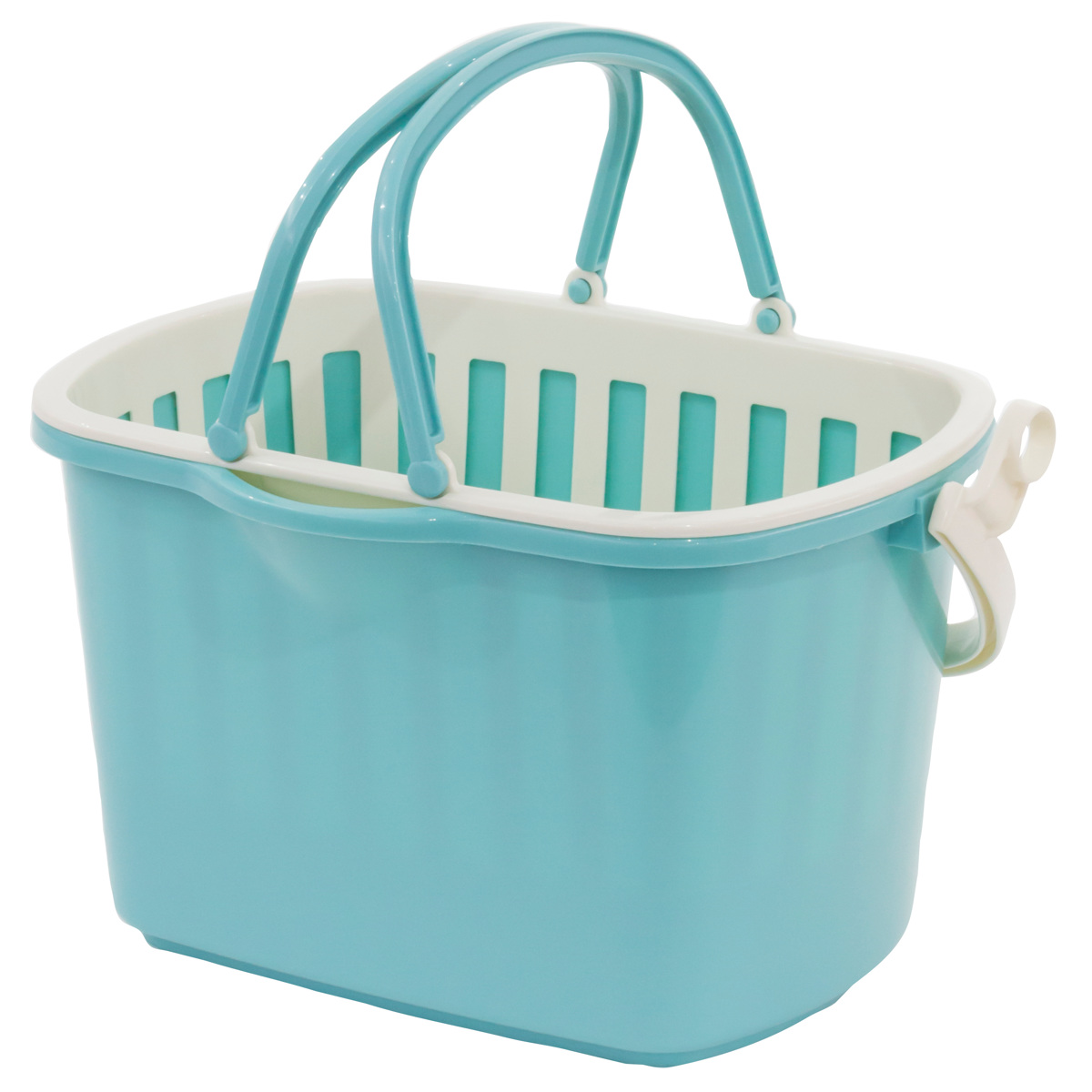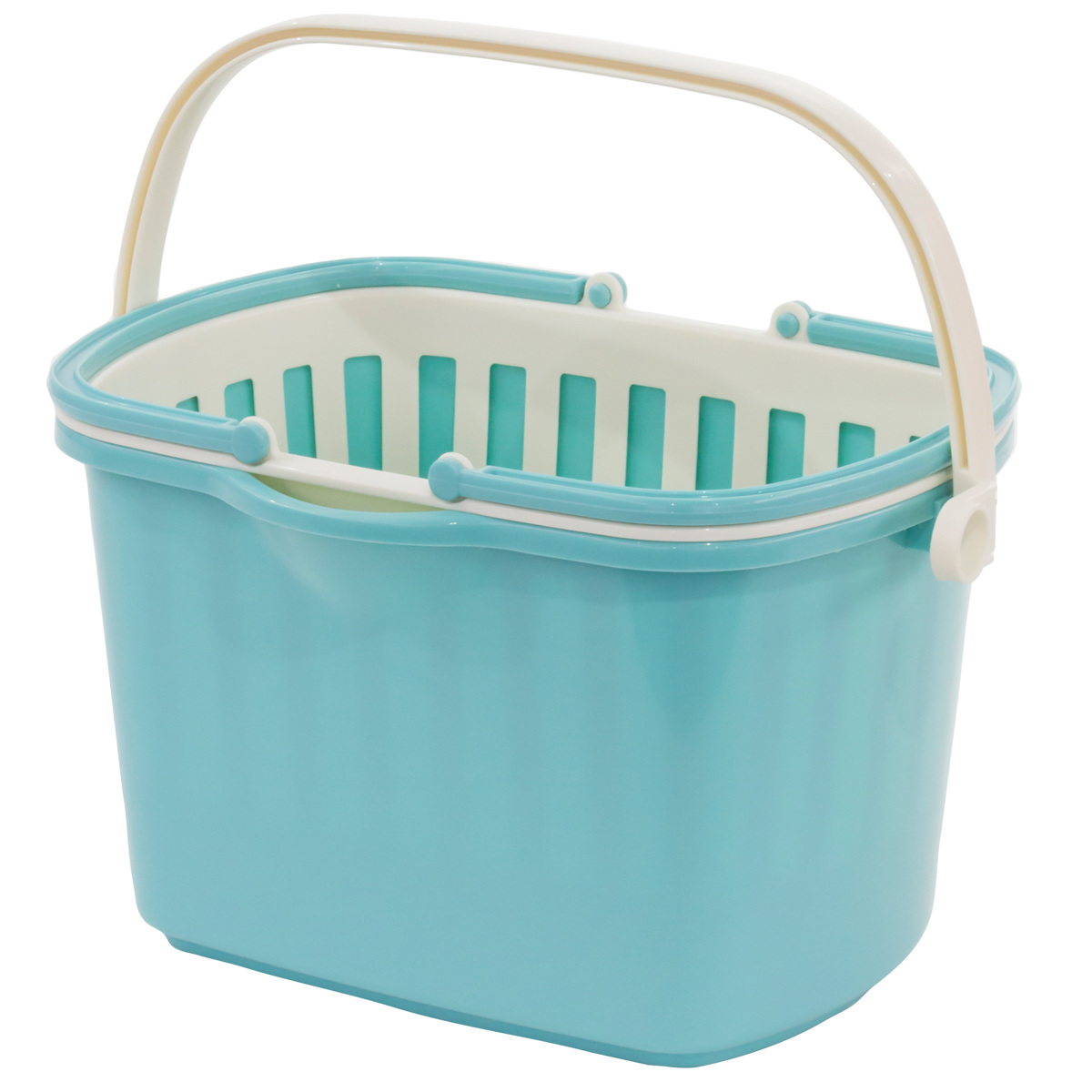小物を収納できるバスケットと幅広角型バケツのセットです。それぞれにハンドルが付いているので、別々に使用できます。