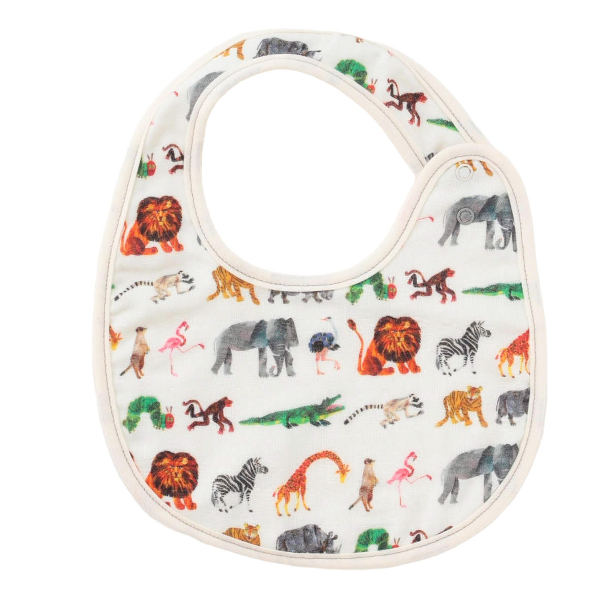 「はらぺこあおむし」とフルーツやサファリの動物たちが描かれた、ユニセックスなデザインが魅力です。ちょっとしたプレゼントとしてもおすすめです。