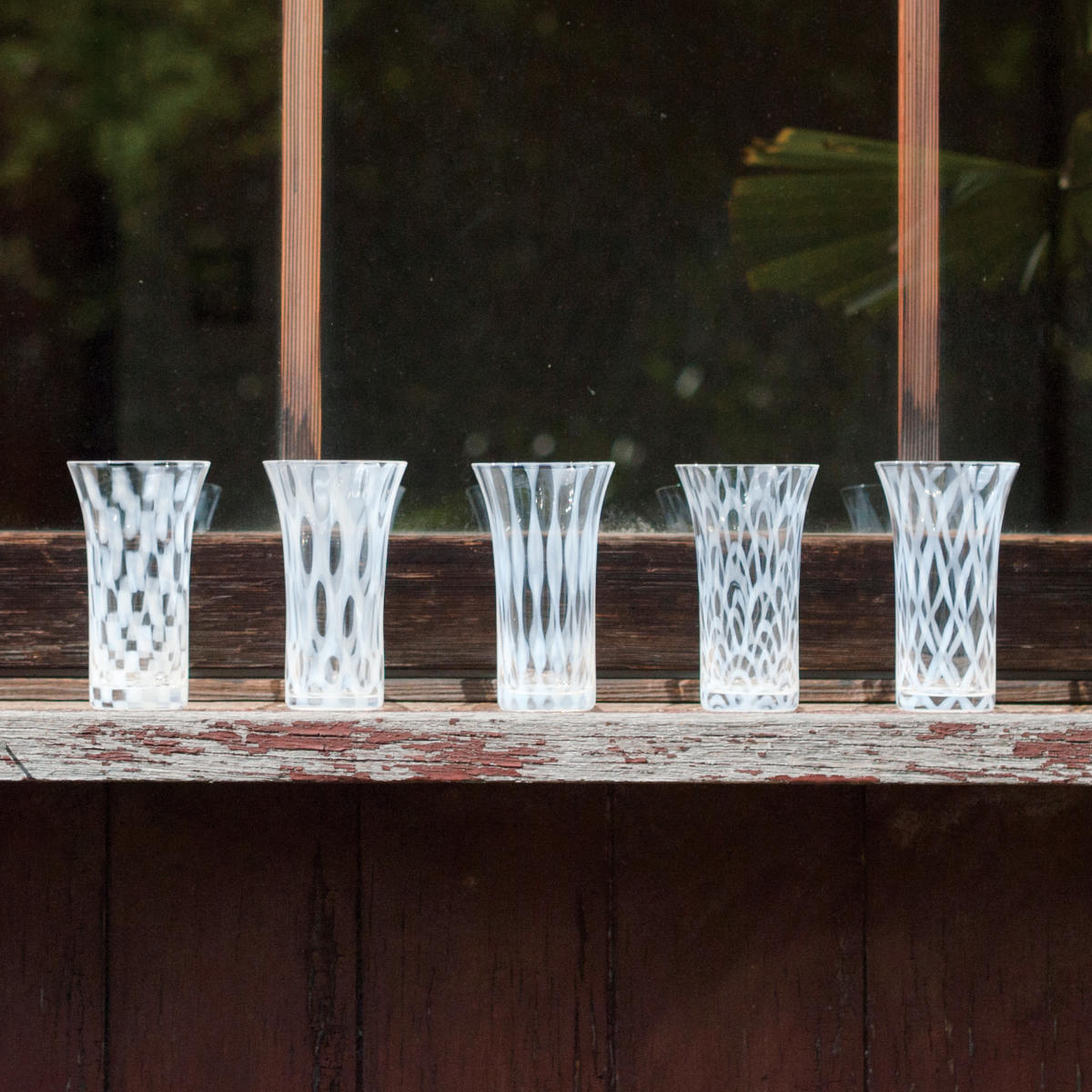 江戸時代の後期から変わらず、東京の下町で卓越した職人の技術に支えられながら作られている「大正浪漫硝子」シリーズ。型違いのアイテムも多いので、揃えてお使いいただくと上品な雰囲気を演出できます。