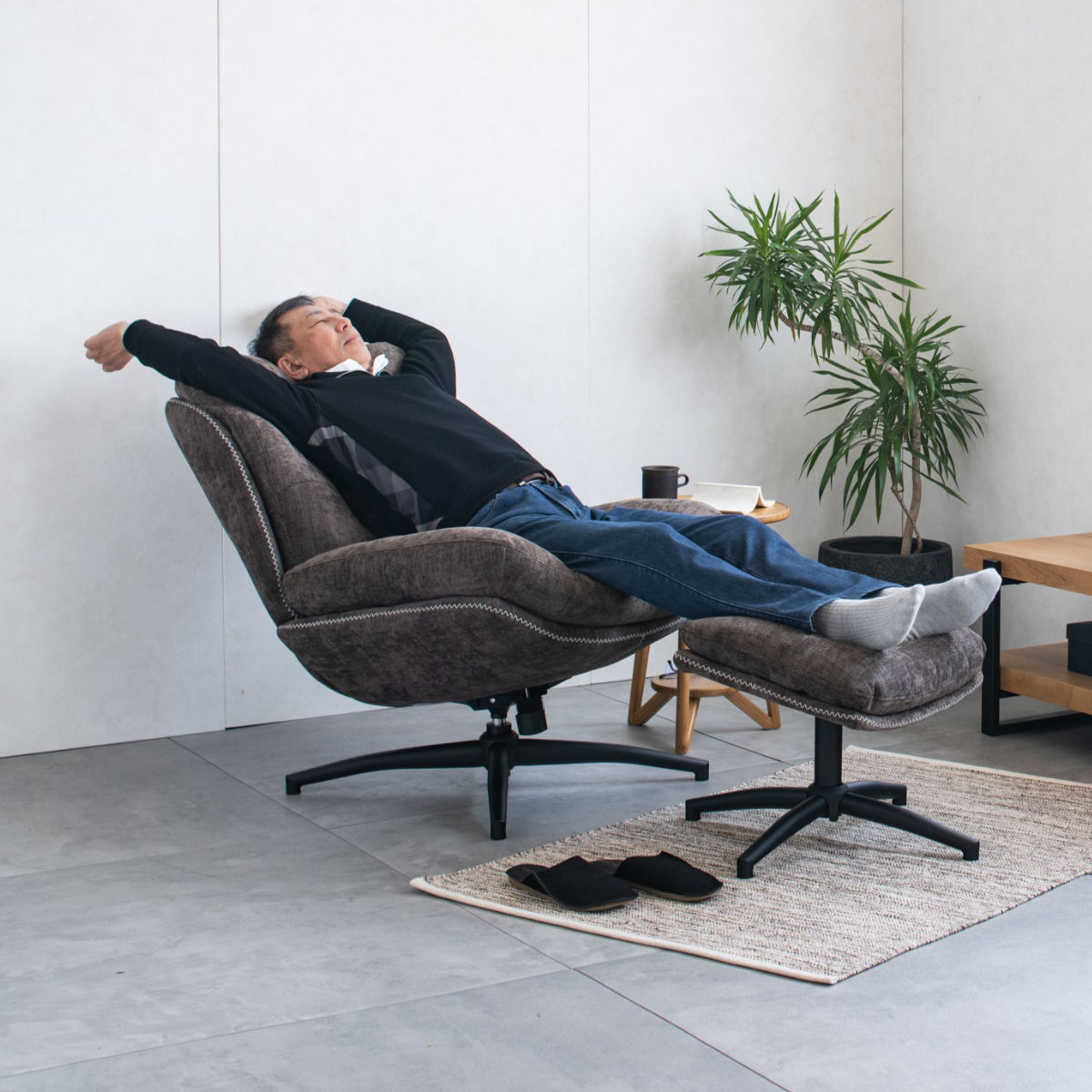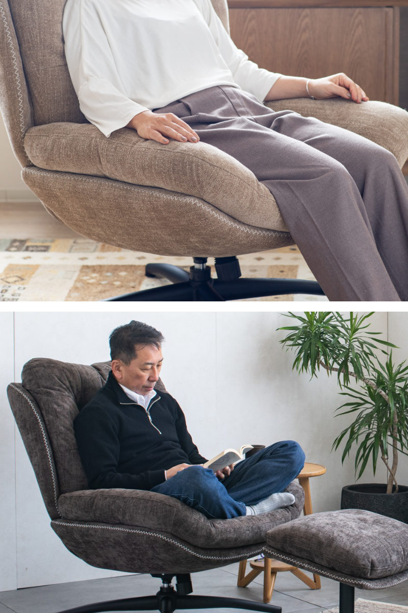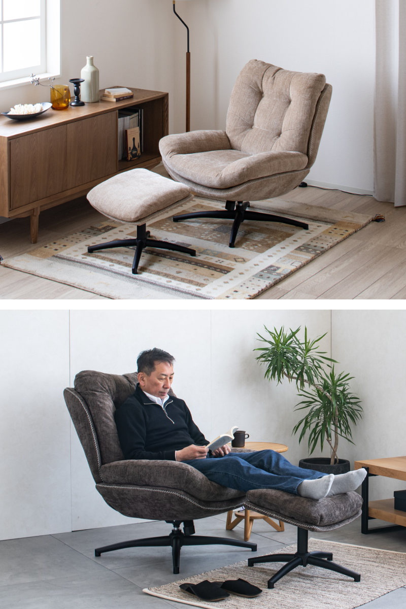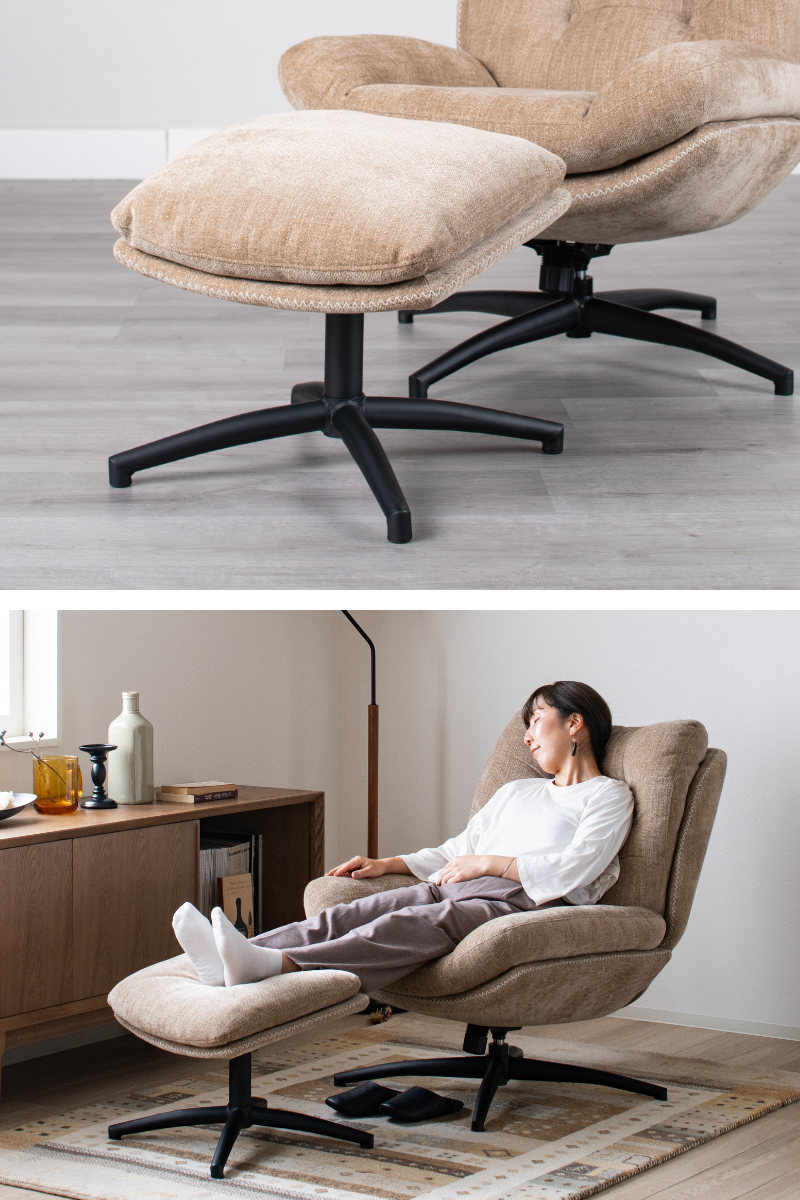 脚を伸ばしてくつろげるオットマン付きチェア