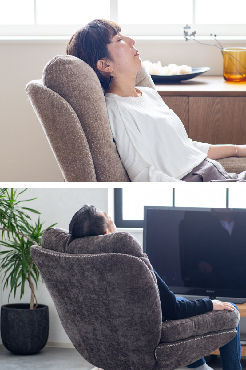首や肩までも包み込んでくれるので、身体を預けて楽な姿勢をキープできます。長時間座っていても疲れにくく、快適にお過ごしいただけます。